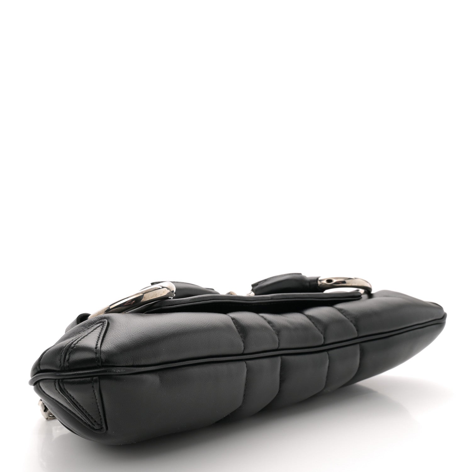 Nappa Vertical Matelasse Medium Maxi Horsebit Chain Shoulder Bag Black