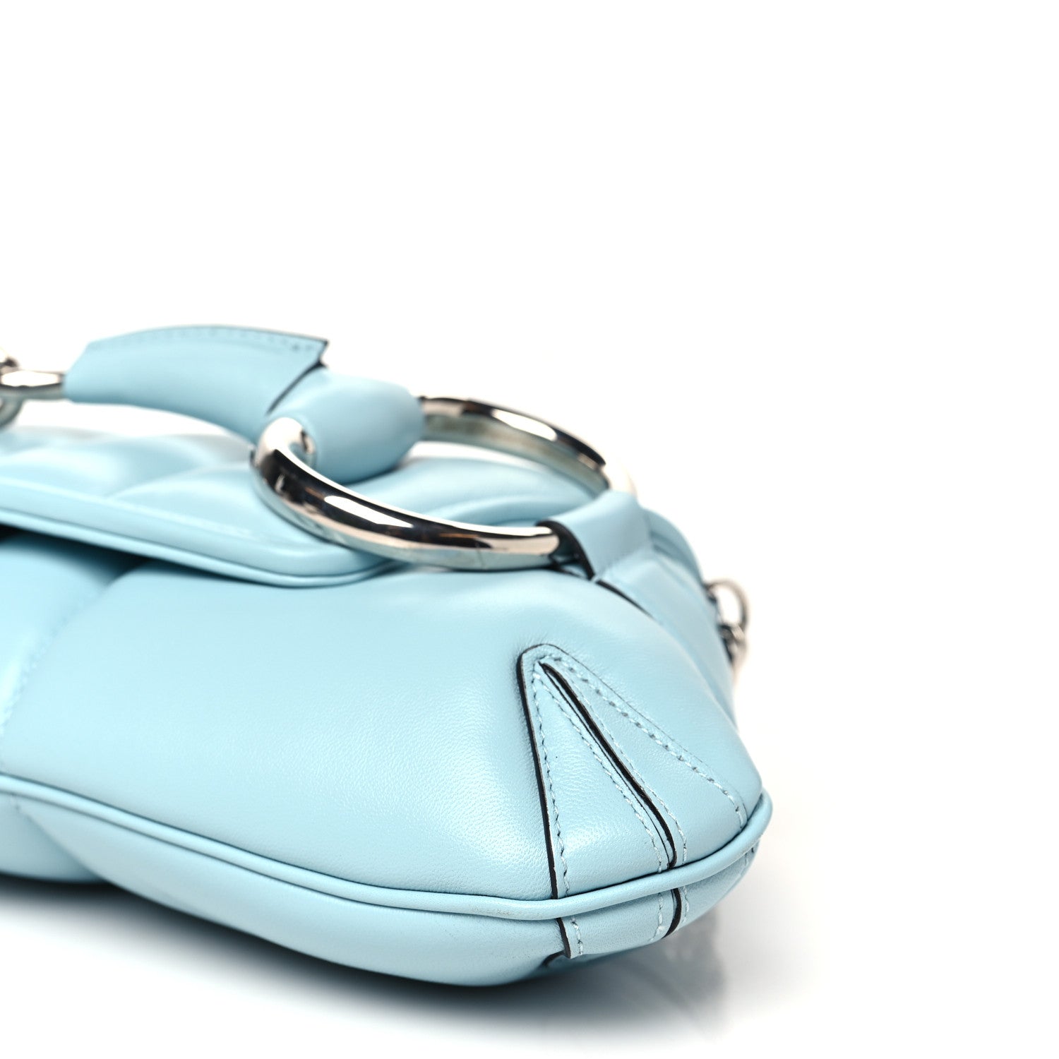 This is an authentic GUCCI Nappa Vertical Matelasse Medium Maxi Horsebit Chain Shoulder Bag in Crystal Snow. This shoulder bag is crafted of light blue nappa leather and silver hardware. The flap opens to a light blue satin interior with a patch pocket.Follow this item for alerts. Gucci is a registered trademark of Gucci. FASHIONPHILE is not affiliated with Gucci.