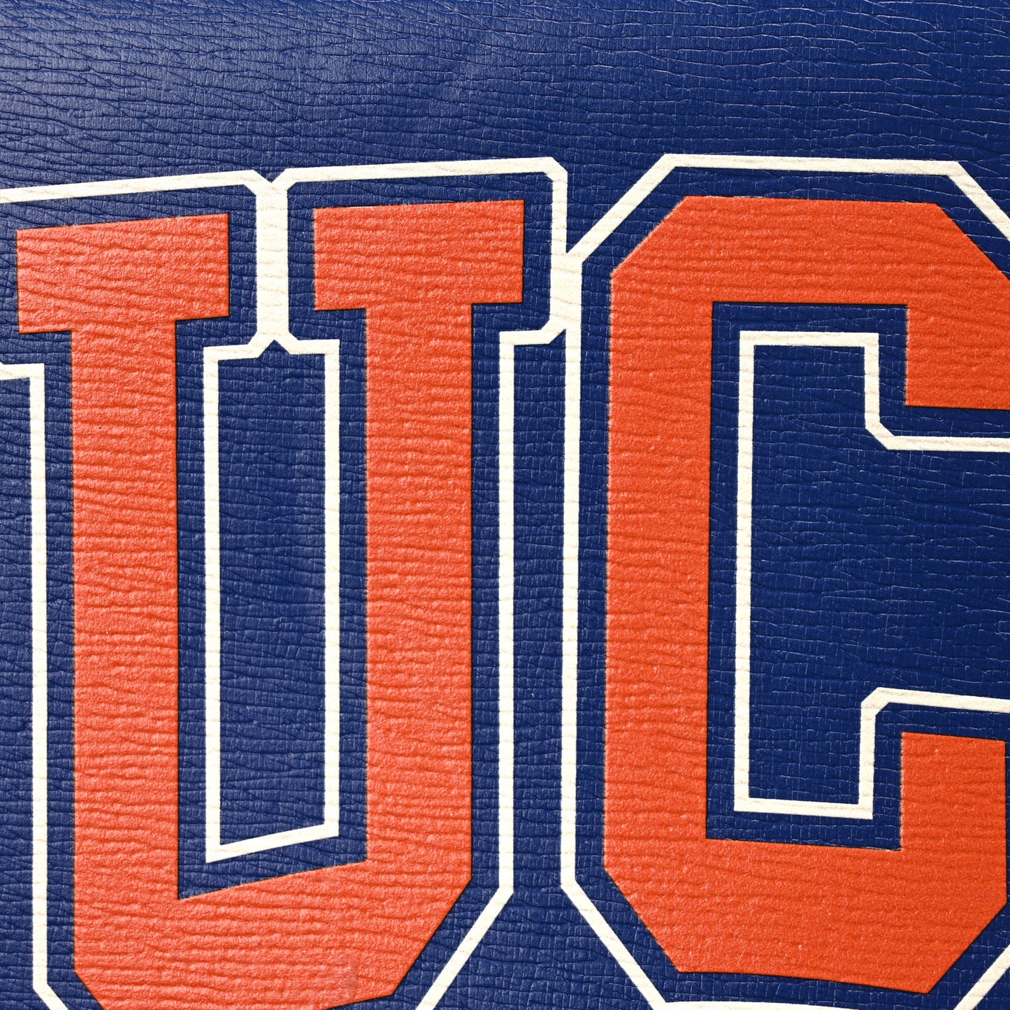 This is an authentic GUCCI New Shanghai Calfskin Interlocking G Logo Wristlet Pouch in Cobalt Blue and Orange. This versatile bag is crafted of blue calfskin leather with a matching leather wristlet strap. The bag features blue hardware and orange Gucci logo print overlays on the front and back. The top zipper opens to a blue fabric interior with card slots.Follow this item for alerts. Gucci is a registered trademark of Gucci. FASHIONPHILE is not affiliated with Gucci.