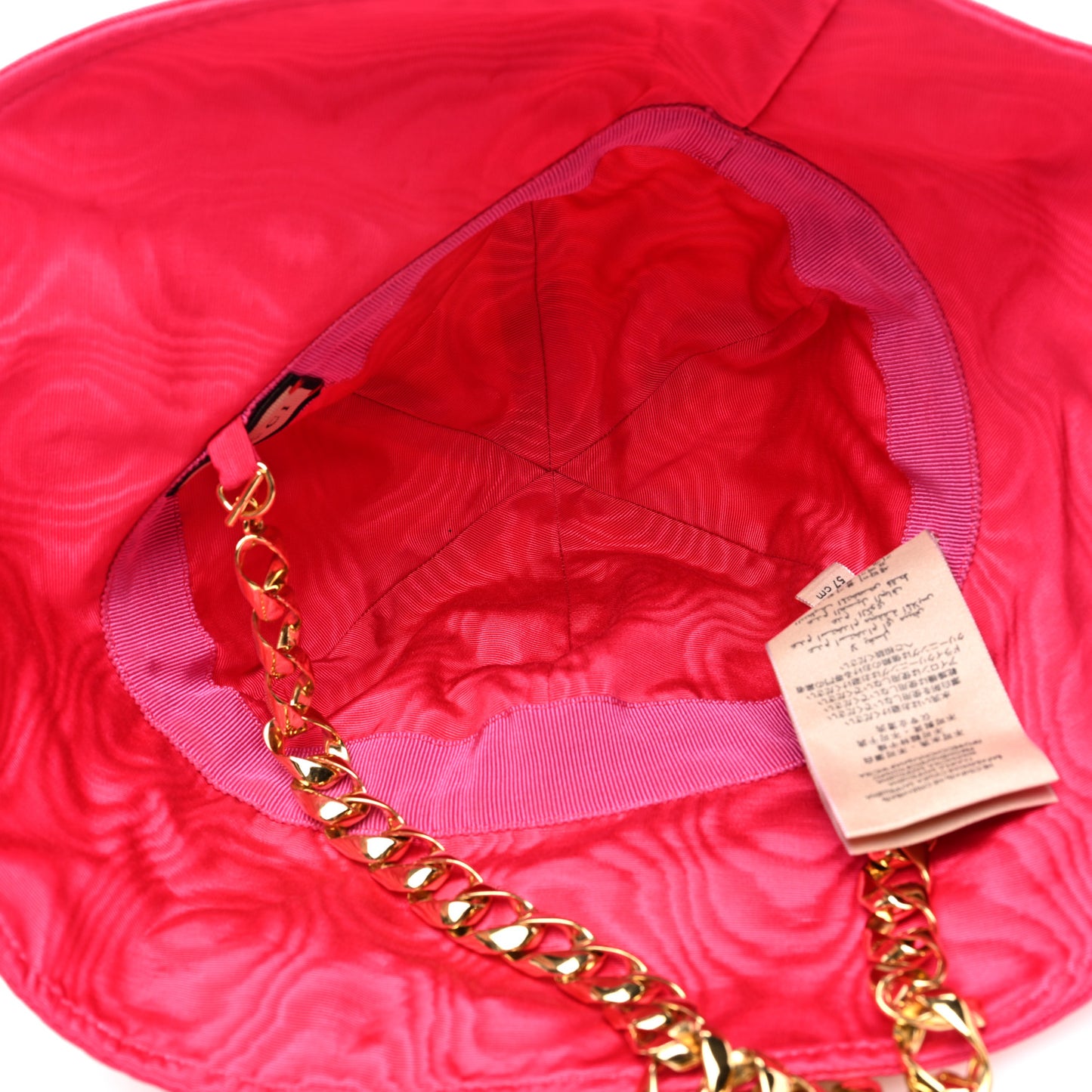 This is an authentic GUCCI Nylon GG Elevation Clock Moiret Mirage Bucket Hat M in Lampone. This stylish size M hat is crafted of 100% Nylon in bright pink. It features a removable gold chain link and Gucci GG logo.Follow this item for alerts. Gucci is a registered trademark of Gucci. FASHIONPHILE is not affiliated with Gucci.