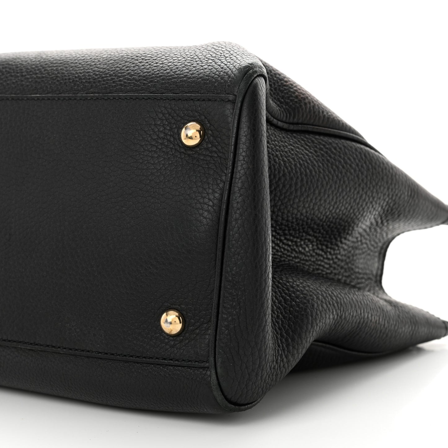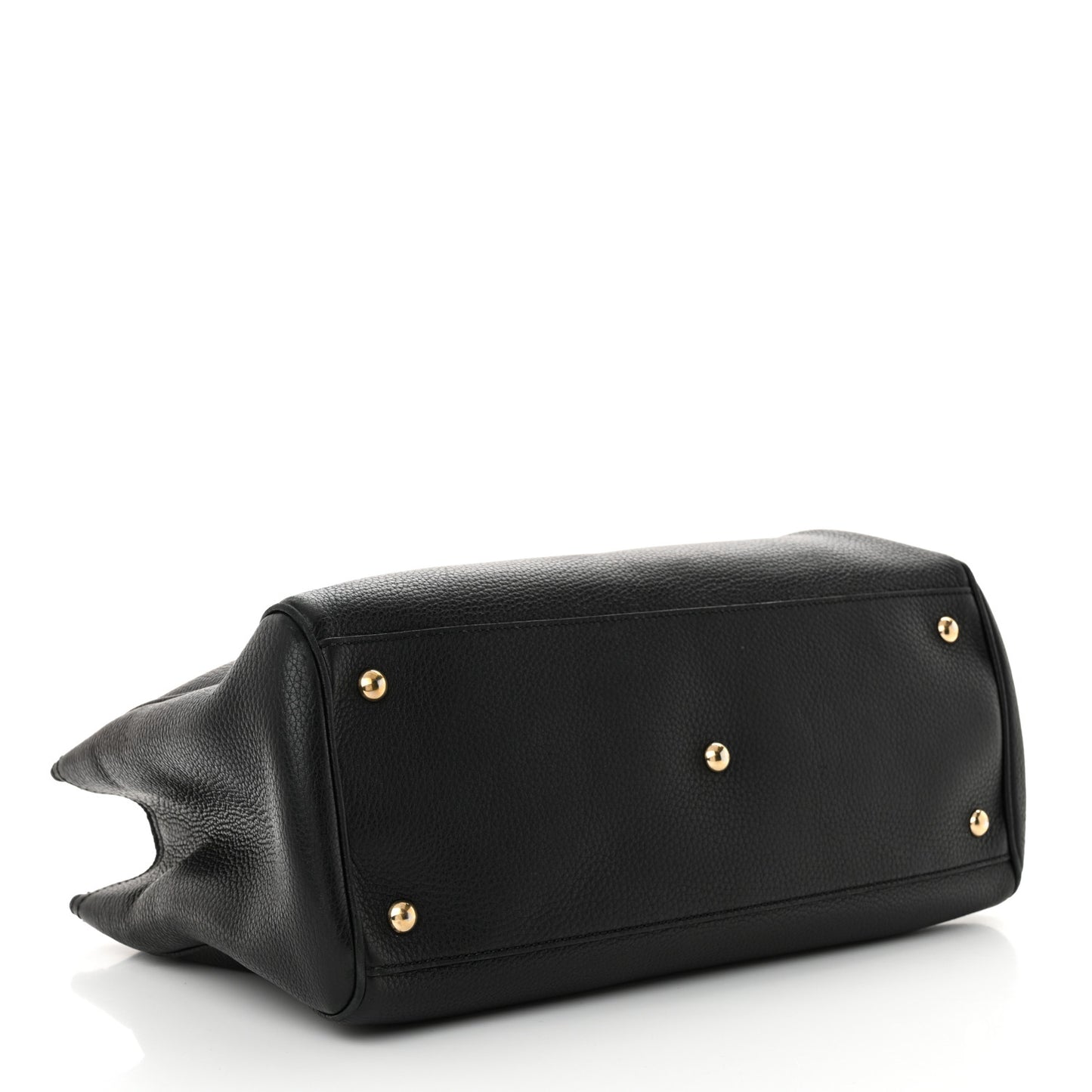 Pebbled Calfskin Medium Bamboo Shopper Tote Black