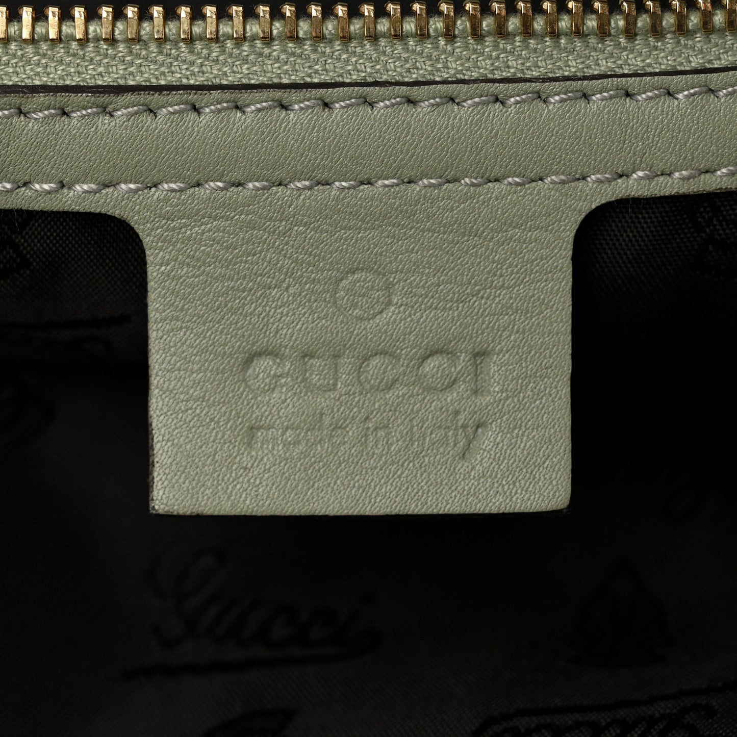 This is an authentic Gucci Snakeskin Medium Indy Top Handle Hobo in Green and Multicolor. This chic hobo is beautifully crafted of sage green snakeskin. It features a looping sturdy leather top handle with polished hardware and a double bamboo knob leather strand tassel. The top opens to a brown fabric interior with pockets.Follow this item for alerts. Gucci is a registered trademark of Gucci. FASHIONPHILE is not affiliated with Gucci.
