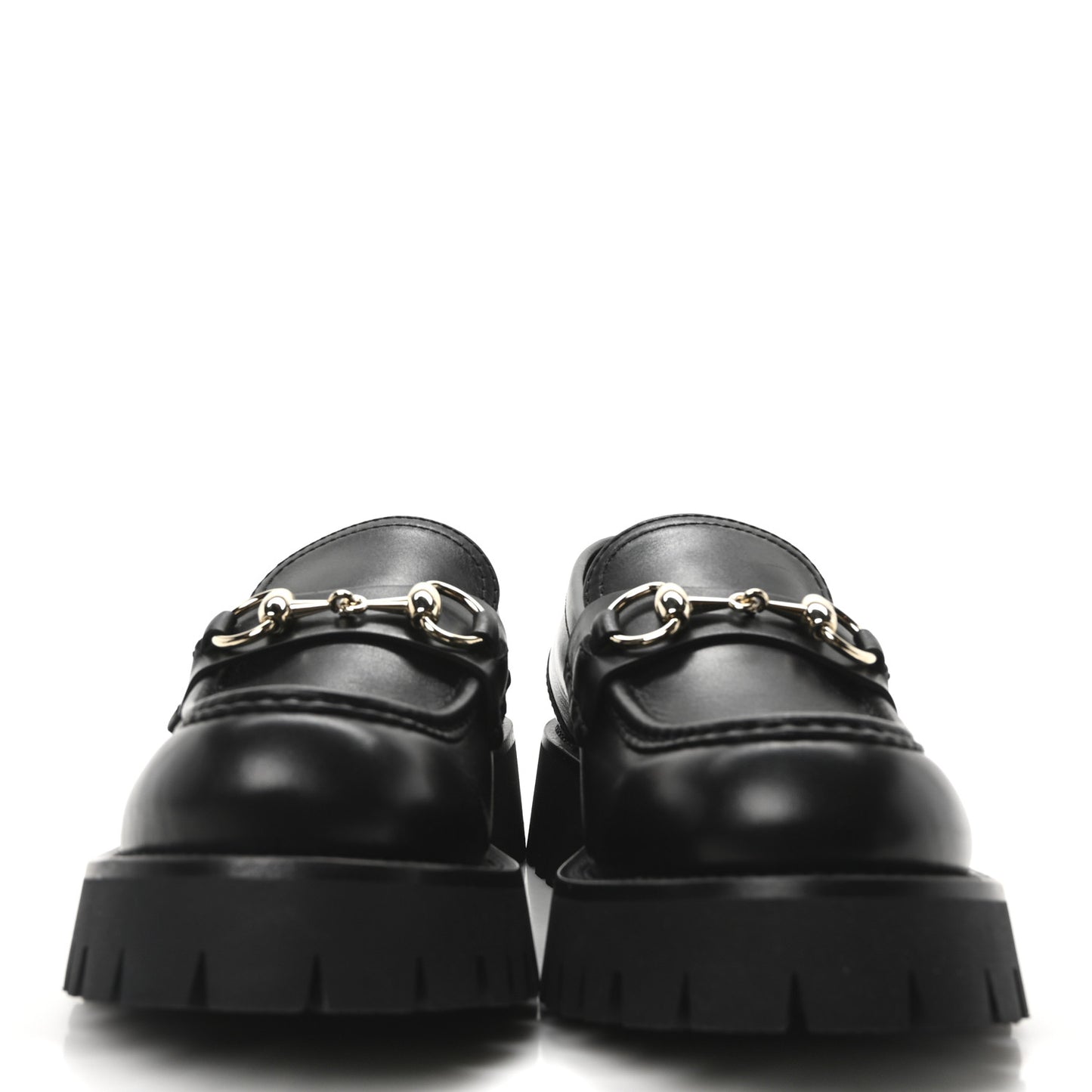 This is an authentic pair of GUCCI Real Betis Glamour Calfskin Horsebit Womens Mocassin Loafers size 36.5 in Black. These loafers are crafted of glossy black leather with light gold horsebits details across the vamp and chunky black rubber soles.Follow this item for alerts. Gucci is a registered trademark of Gucci. FASHIONPHILE is not affiliated with Gucci.