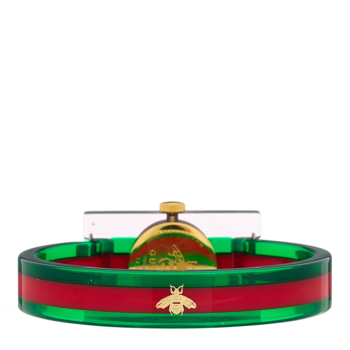 This is an authentic GUCCI Stainless Steel Plexiglass Mother of Pearl 24mm Rainbow Quartz Watch. This watch is crafted of multicolored acrylic plexiglass and features a gold case with a mother of pearl dial, gold sword hands, and a quartz movement.Follow this item for alerts. Gucci is a registered trademark of Gucci. FASHIONPHILE is not affiliated with Gucci.