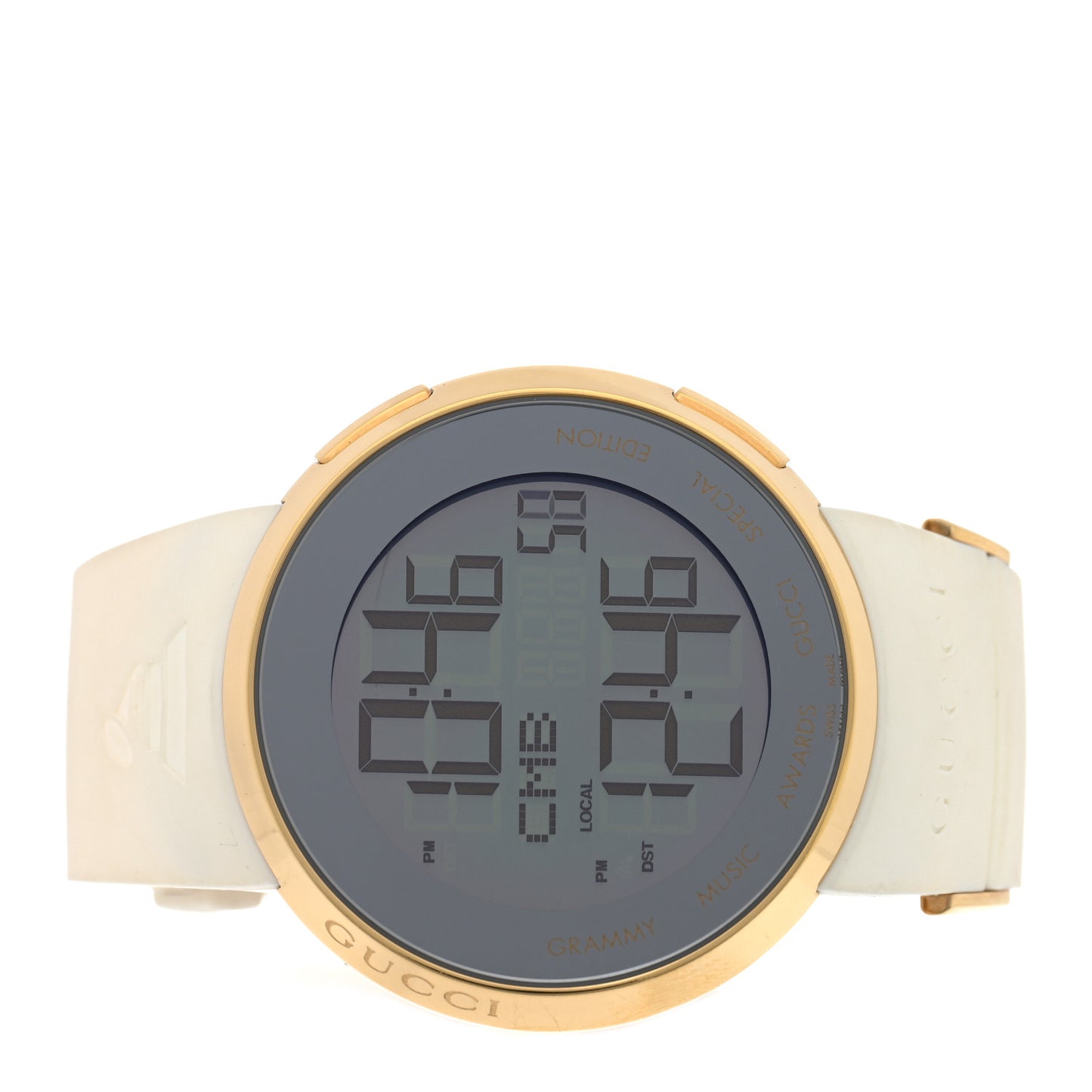 This is an authentic GUCCI Stainless Steel Rubber 45mm Digital I-Gucci Guccissima Grammy Awards Watch. This watch is crafted of stainless steel and features a grey dial, white rubber strap, sapphire crystal, and a quartz movement.Follow this item for alerts. Gucci is a registered trademark of Gucci. FASHIONPHILE is not affiliated with Gucci.