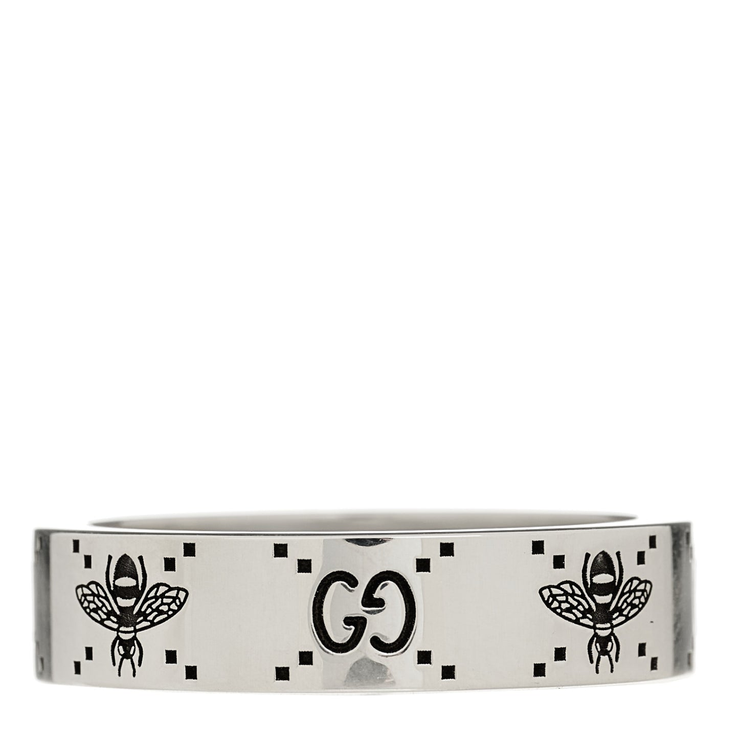 This is an authentic GUCCI Sterling Silver Bee Ring 66 11.5. The ring is crafted of sterling silver and features the double G logo and bee motifs engraved throughout the band.Follow this item for alerts. Gucci is a registered trademark of Gucci. FASHIONPHILE is not affiliated with Gucci.