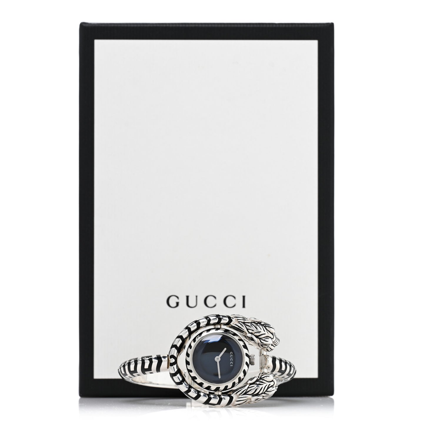 This is an authentic GUCCI Sterling Silver Black Mother of Pearl 23mm Dionysus Quartz Watch. The watch is crafted of sterling silver and features a double-headed snake motif, black mother of pearl dial, sapphire crystal, and a Swiss quartz movement.Follow this item for alerts. Gucci is a registered trademark of Gucci. FASHIONPHILE is not affiliated with Gucci.