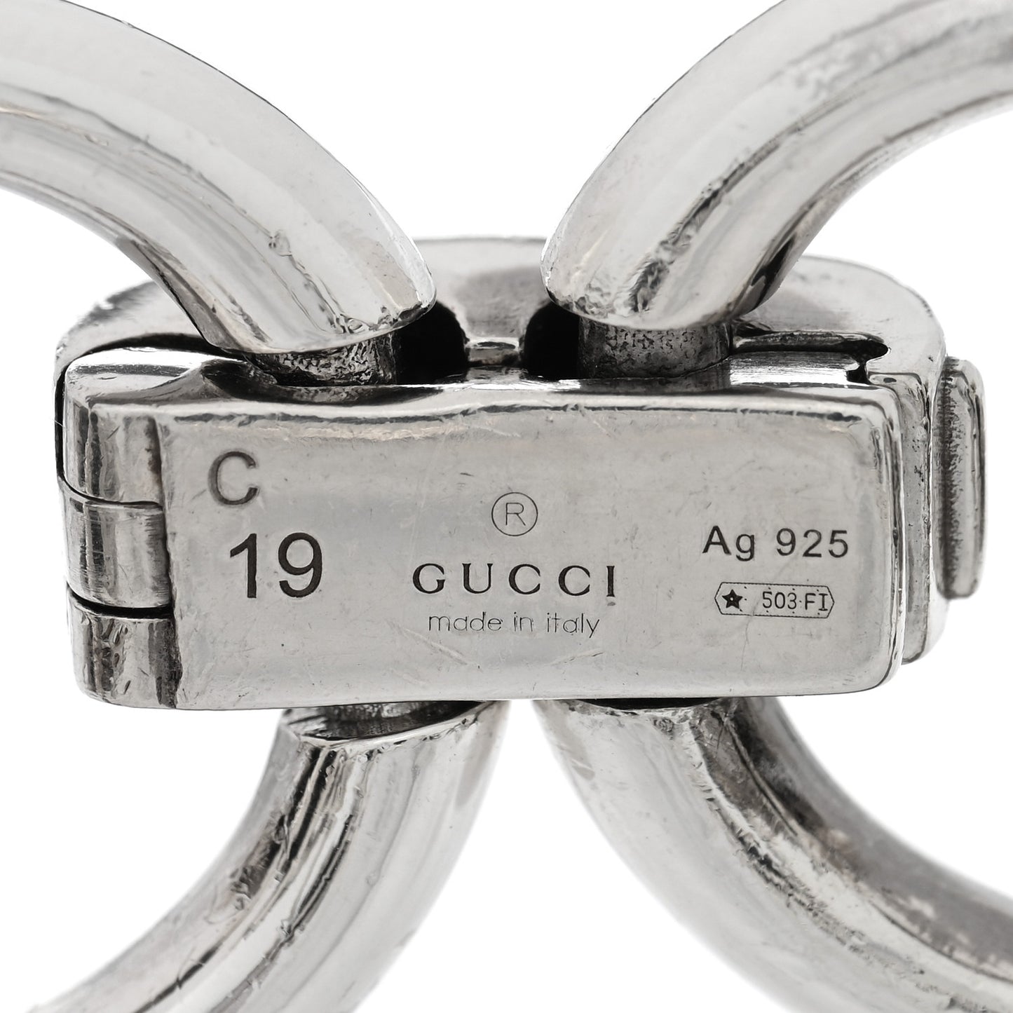 This is an authentic GUCCI Sterling Silver Enamel Horse Head Link Chain Bracelet in Blue and Green. The bracelet is crafted of sterling silver and features large, stylized links with horse head motifs accented with blue and green enamel.Follow this item for alerts. Gucci is a registered trademark of Gucci. FASHIONPHILE is not affiliated with Gucci.