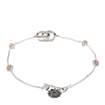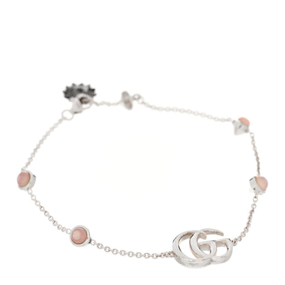 This is an authentic GUCCI Sterling Silver Pink Mother of Pearl Double G Flower Bracelet. The bracelet is crafted of sterling silver and features a single GG logo between stations set with pink mother of pearl.Follow this item for alerts. Gucci is a registered trademark of Gucci. FASHIONPHILE is not affiliated with Gucci.