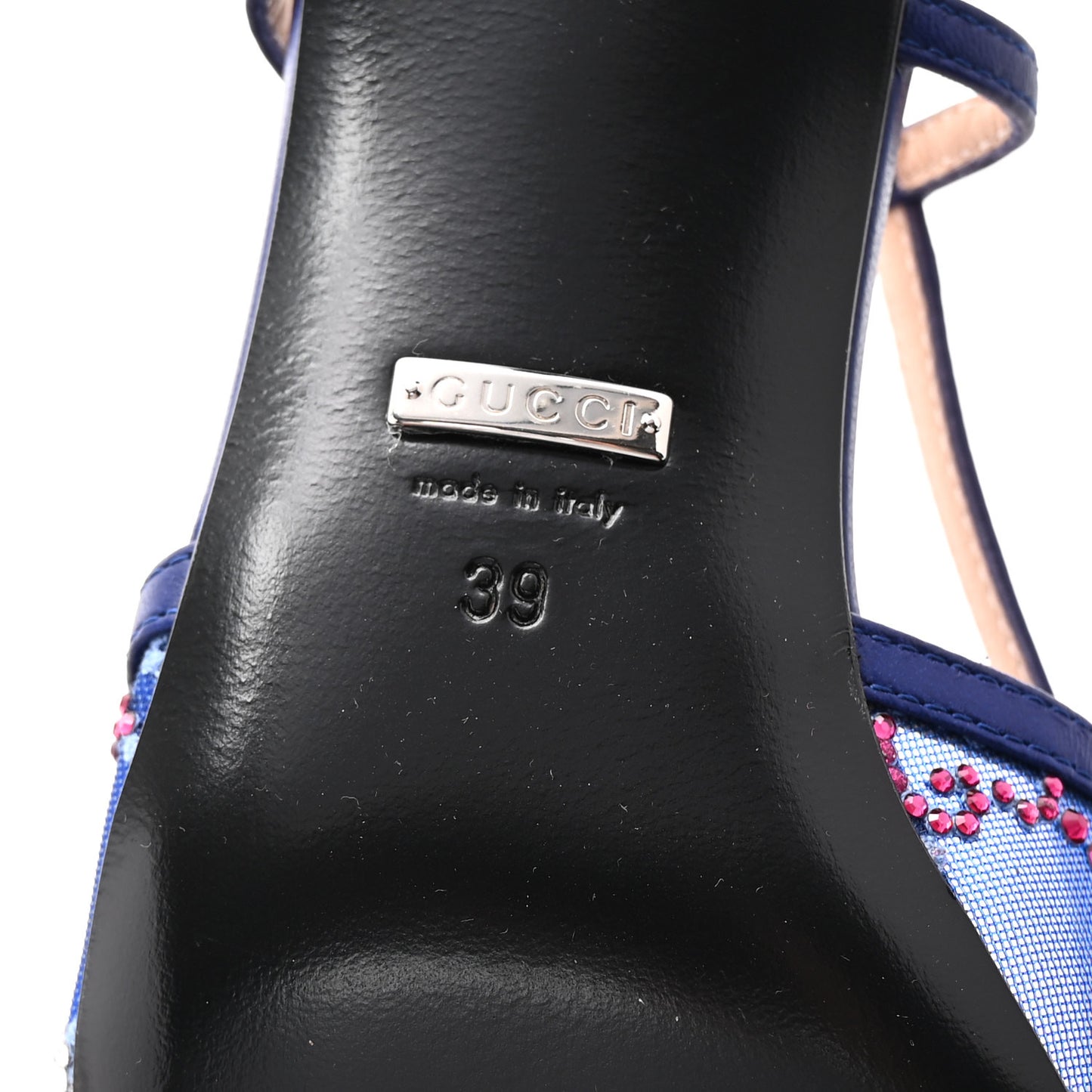 Gucci/ Accessories/ Shoes /Gucci Tela Retino Nappa Charlotte Crystal GG Monogram Square G 35mm Slingback Pumps 39 Splash Net Blue Witch