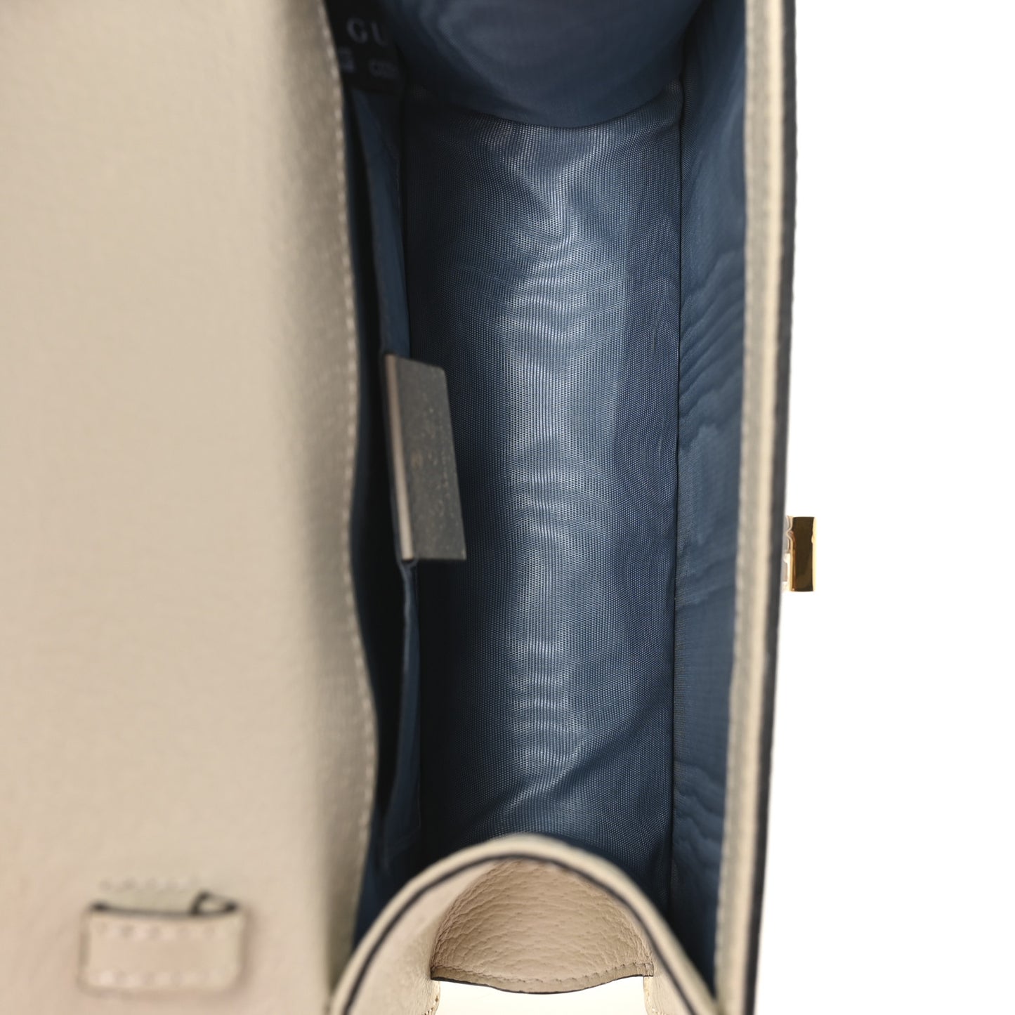 This is an authentic GUCCI Textured Calfskin Bee Star Print Mini Sylvie Top Handle Bag in Mystic White. This chic structured shoulder bag is crafted of smooth off-white calfskin leather with bees and stars printed in gold foil. It features a prominent front flap detailed with a central red and blue canvas web stripe and a sturdy top handle. The top flap opens to a light blue fabric interior with a flat pocket.Follow this item for alerts. Gucci is a registered trademark of Gucci. FASHIONPHILE is not affiliated with Gucci.