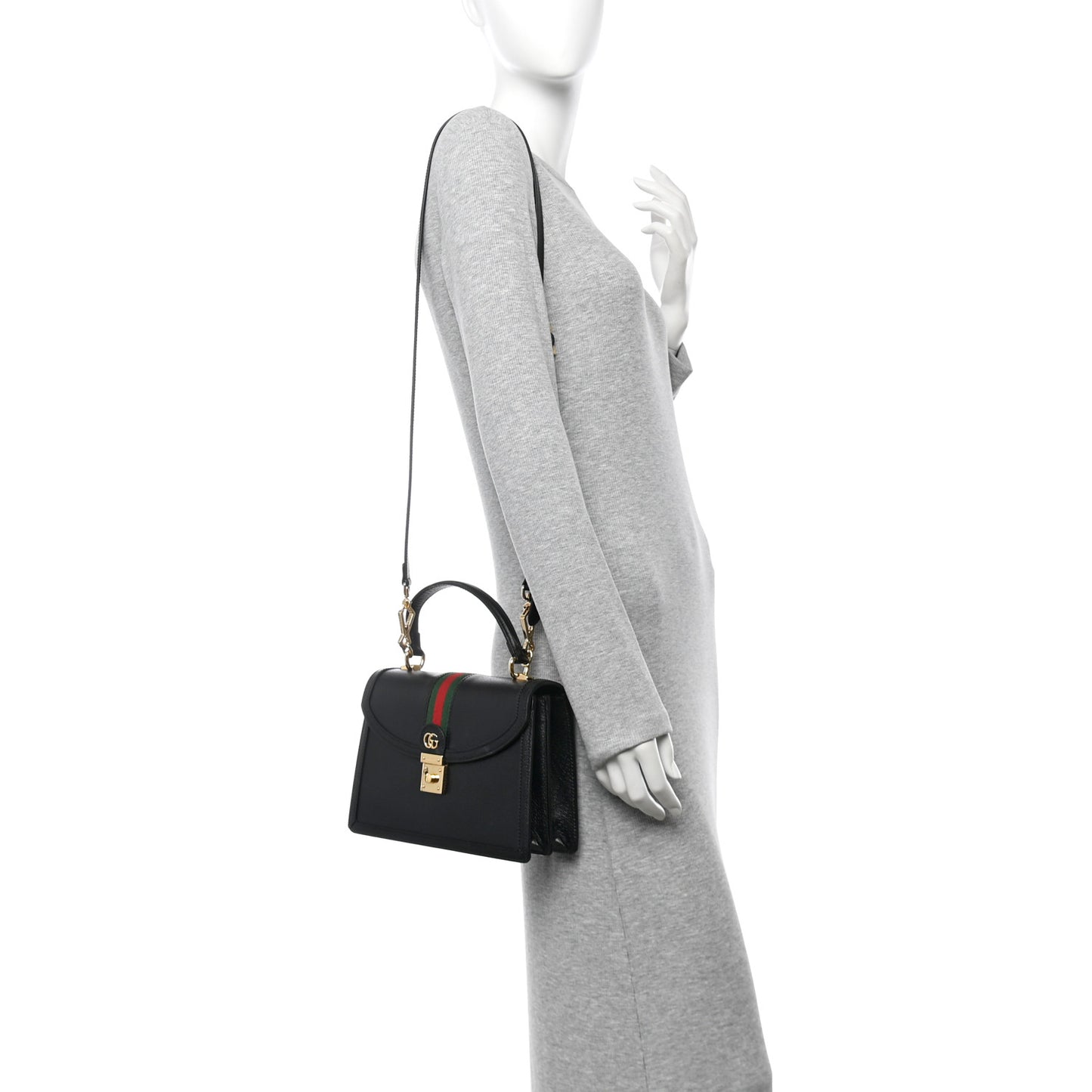 Textured Dollar Calfskin Web Small Ophidia Padlock Top Handle Bag Black