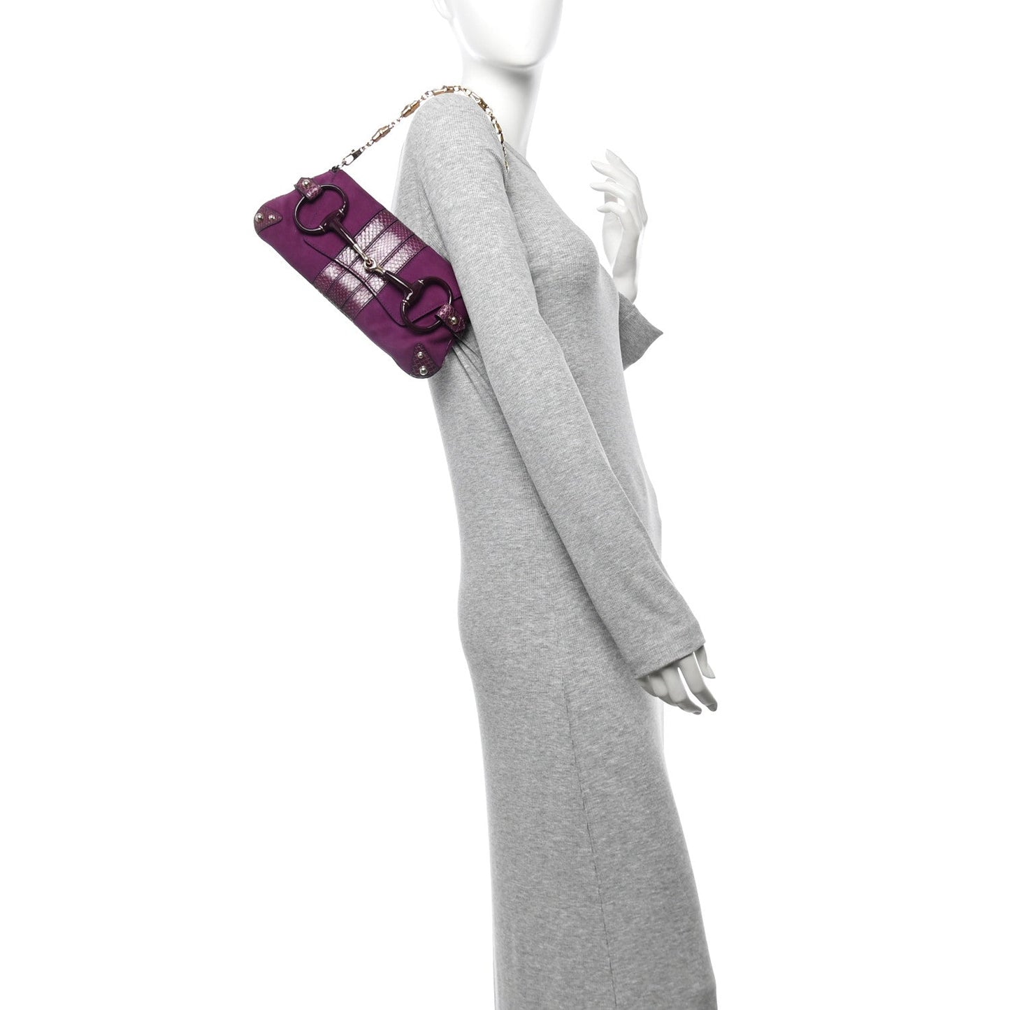 This is an authentic GUCCI Tom Ford Suede Snakeskin Horsebit Clutch in Purple. This stunning evening clutch from the Tom Ford for Gucci era is crafted of luxurious purple suede and snakeskin. The bag features a central stripe, a top bronze bamboo wrist chain, snakeskin straps for a large facing horse bit embellishment, this securing the frontal flap. This flap opens to a compact purple fabric interior with a patch pocket.Follow this item for alerts. Gucci is a registered trademark of Gucci. FASHIONPHILE is not affiliated with Gucci.