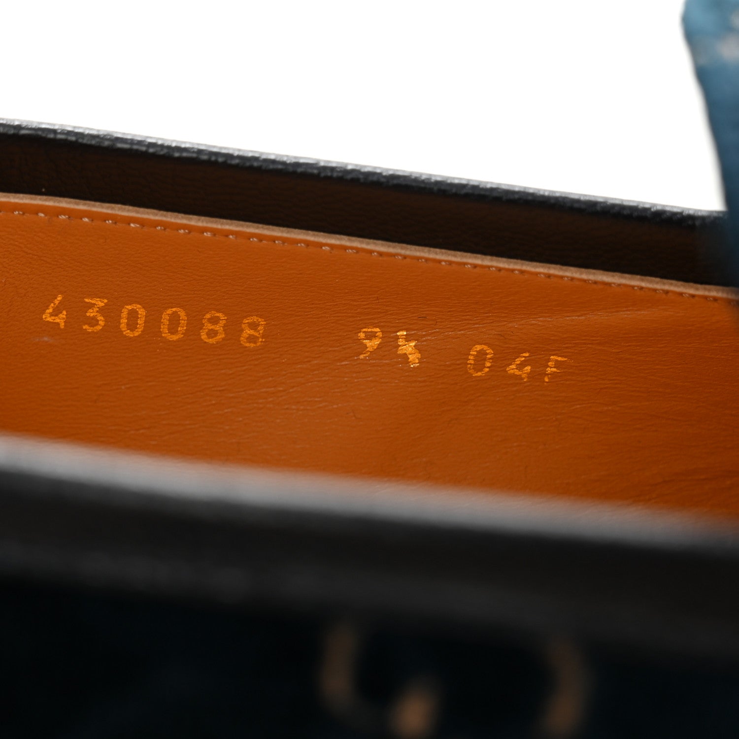 Velvet GG Monogram Horsebit Mens Jordaan Loafers 9.5 Blue Beige