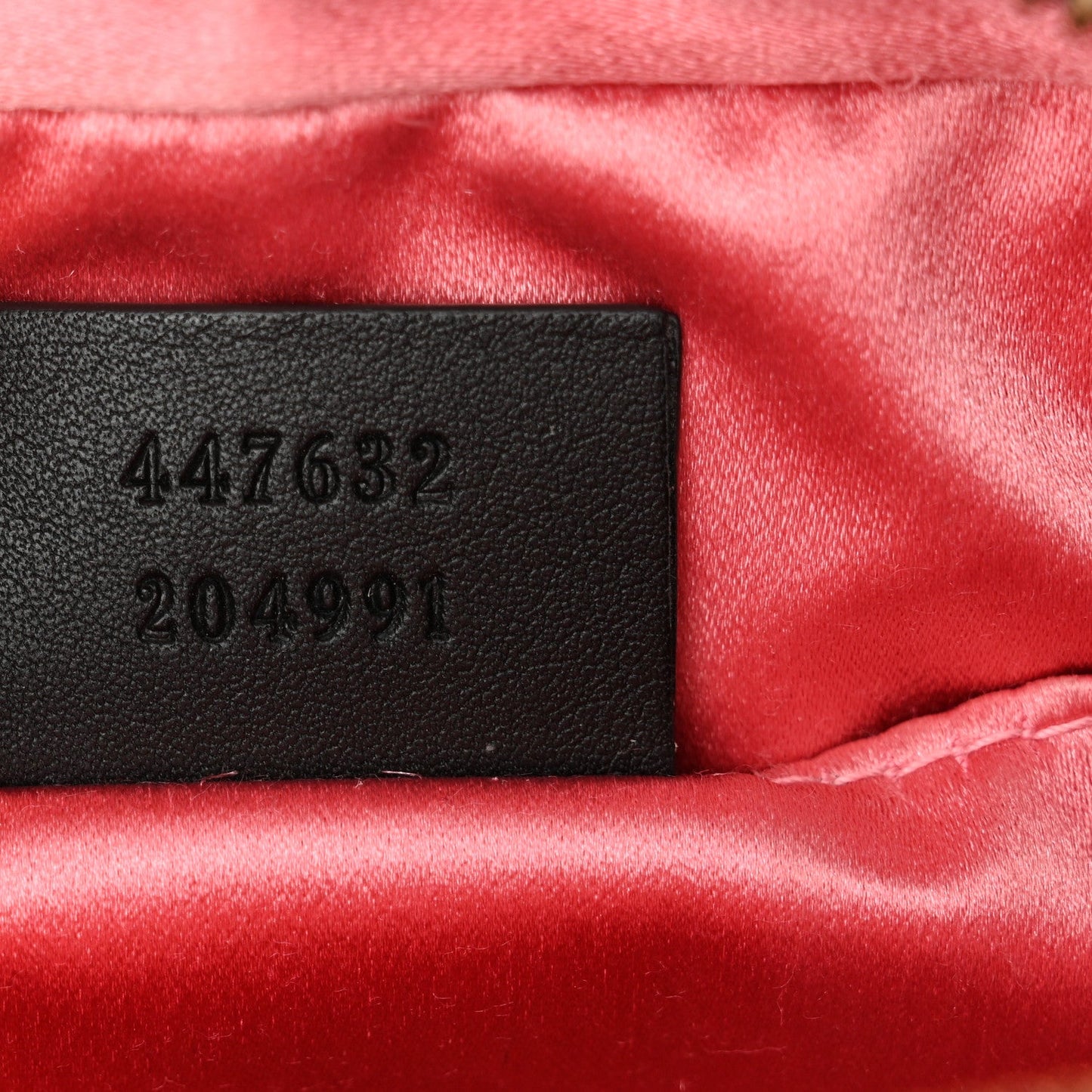 This is an authentic GUCCI Velvet Matelasse Deer Embroidered Small GG Marmont Chain Bag in Black. This shoulder bag is crafted of soft velvet in black with an embroidered art scene on the front. This bag features an aged gold chain and leather shoulder strap and an interlocking aged gold GG logo. The bag opens to a pink satin interior with a flat pocket.Follow this item for alerts. Gucci is a registered trademark of Gucci. FASHIONPHILE is not affiliated with Gucci.