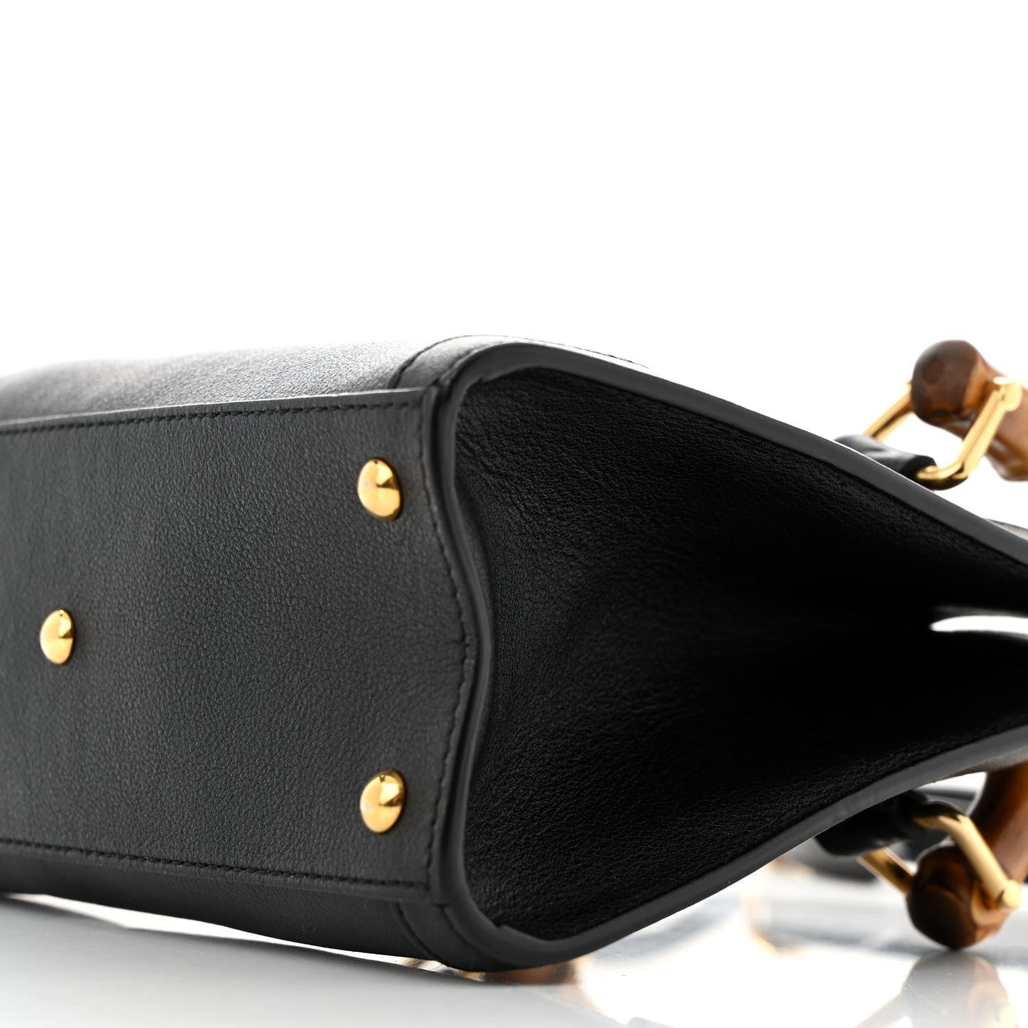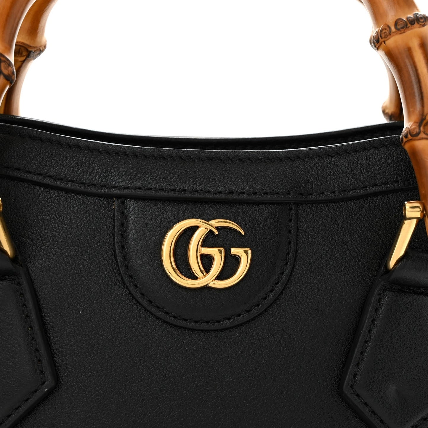 This is an authentic GUCCI Wonka Grain Calfskin Mini Diana Tote Bag in Black and Yellow Fluo. This shoulder bag is crafted of lovely calfskin leather in a black. The bag has an adjustable leather shoulder strap, sturdy bamboo top handles, and brass hardware including an interlocking GG logo. The handbag opens to a beige microfiber interior.Follow this item for alerts. Gucci is a registered trademark of Gucci. FASHIONPHILE is not affiliated with Gucci.