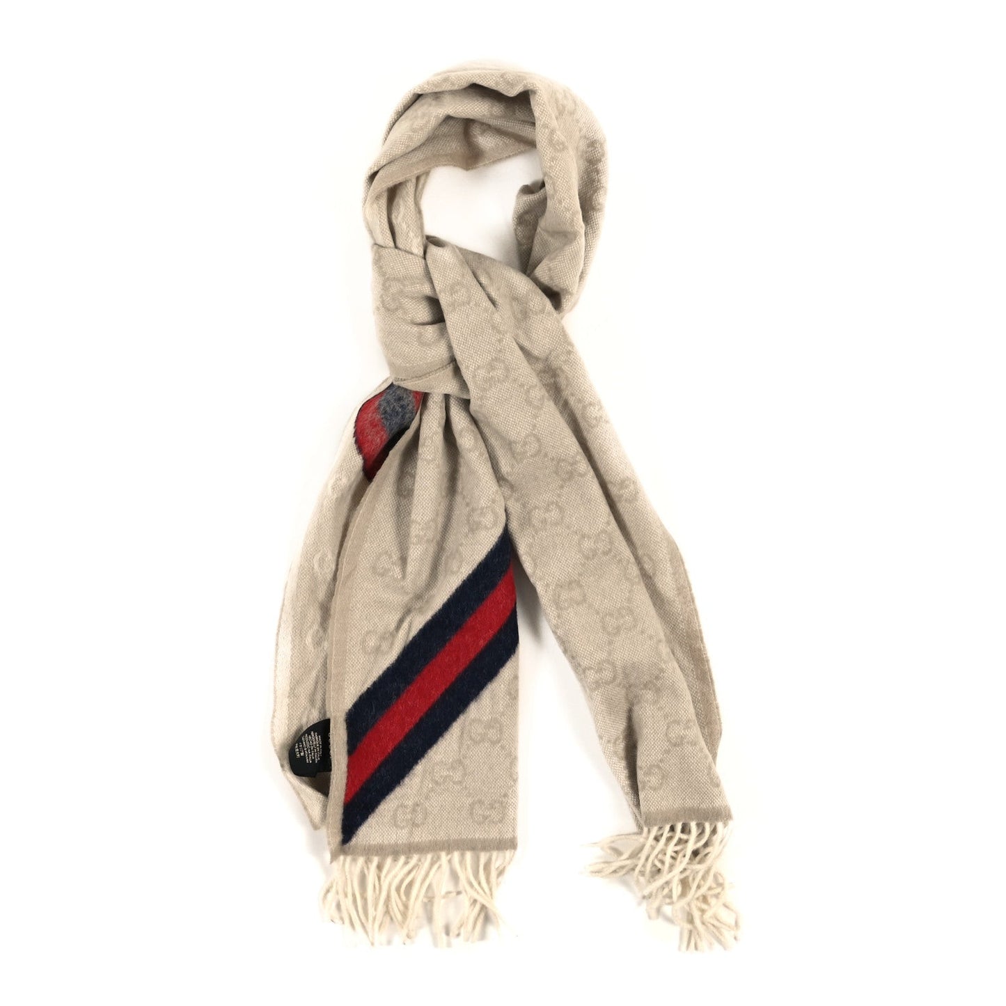 Gucci/ Accessories/ Scarves /Gucci Wool Alpaca Monogram Web New Nikky Scarf Sand Blue