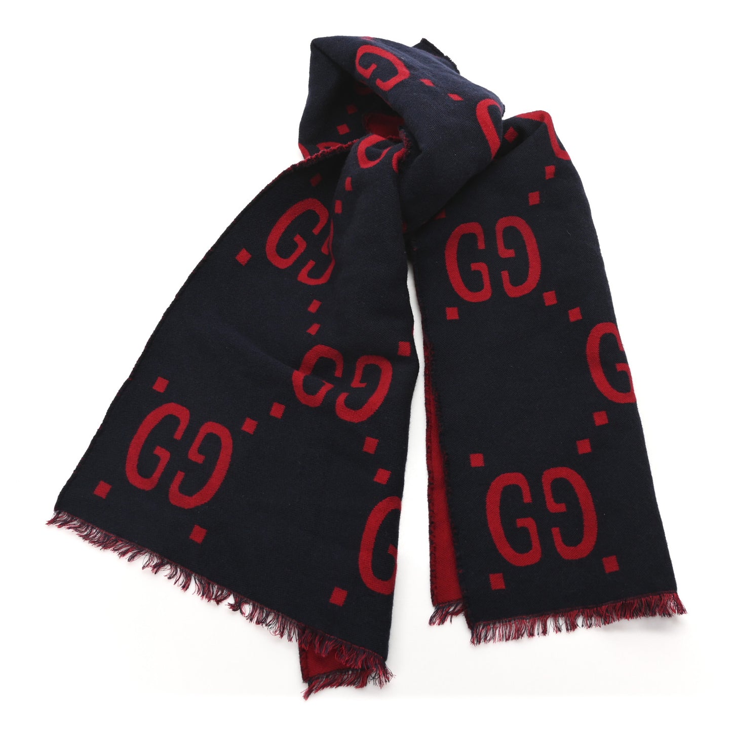 This is an authentic GUCCI Wool Silk Monogram Jumbo GG Freedom Scarf in Midnight Blue and Red. This stunning scarf is crafted of 91% wool and 9% silk and features a beautiful array of blue GG logos on a red background on one side, and red GG logos on a blue background on the reverse. This is an iconic scarf, with the unique style of Gucci!Follow this item for alerts. Gucci is a registered trademark of Gucci. FASHIONPHILE is not affiliated with Gucci.