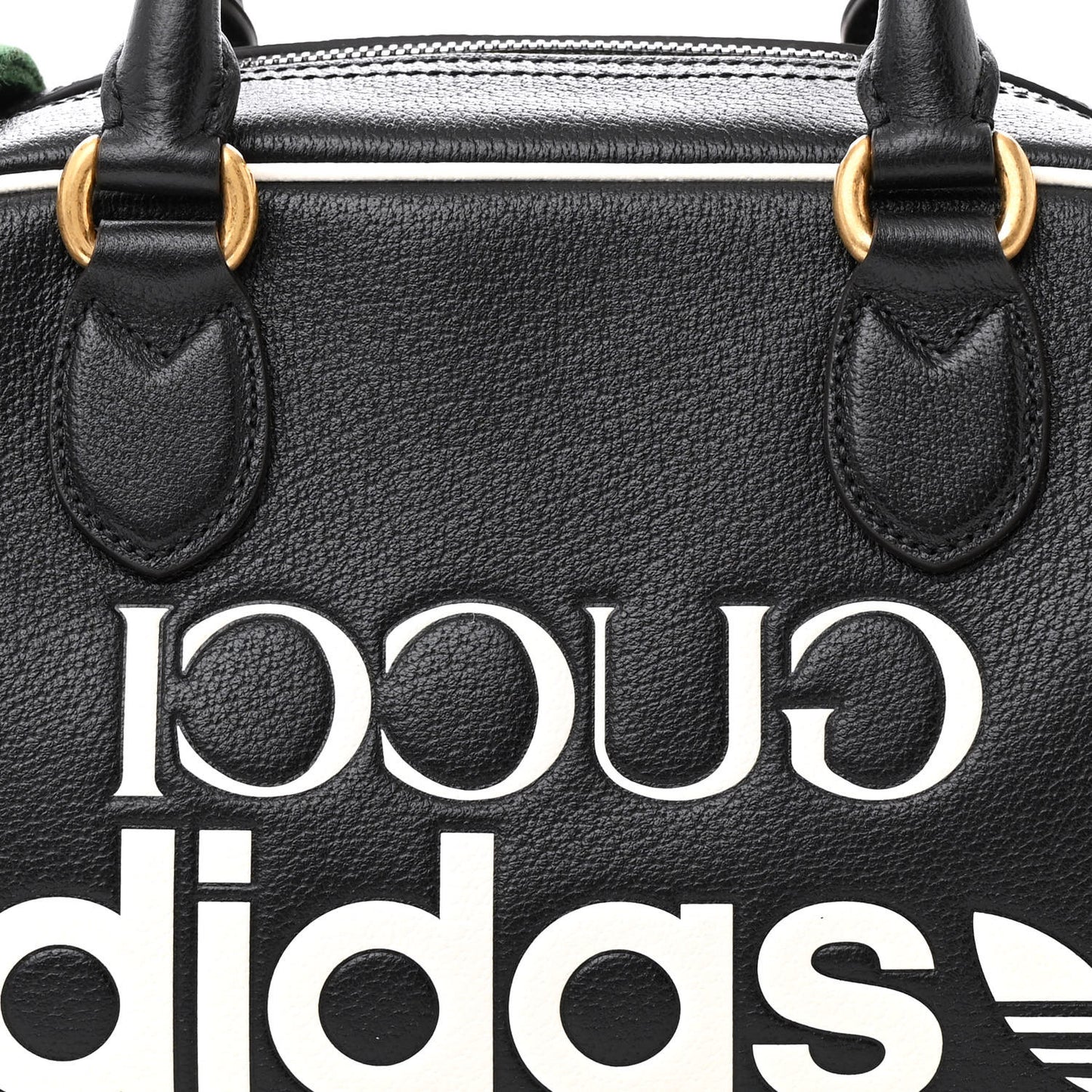 Gucci/ Bags/ Shoulder Bags /Gucci X ADIDAS Textured Dollar Calfskin Web Trefoil Logo Embossed Mini Bowling Bag Black Off White