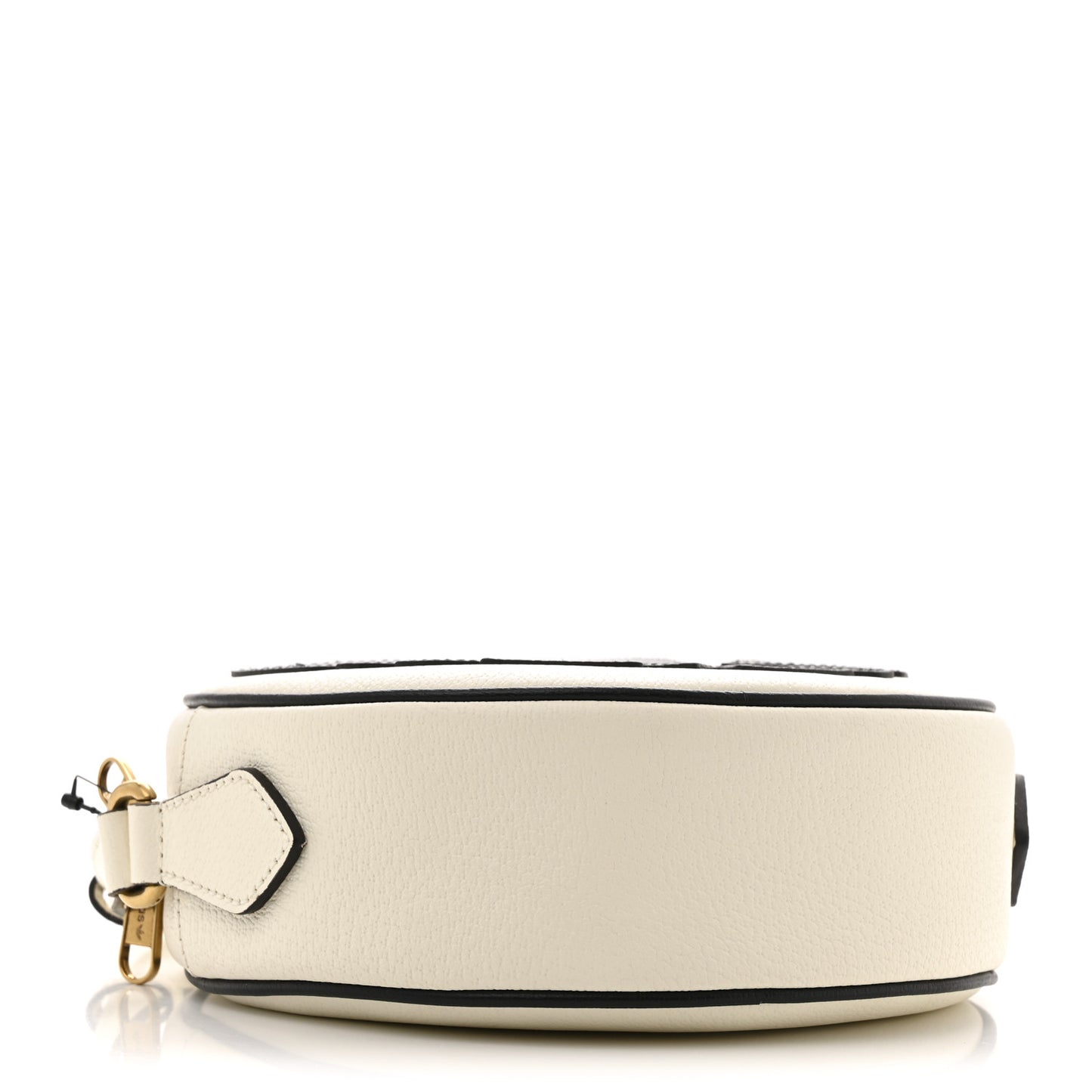 X ADIDAS Textured Dollar Calfskin Web Trefoil Logo Small Ophidia Round Shoulder Bag Off White Black