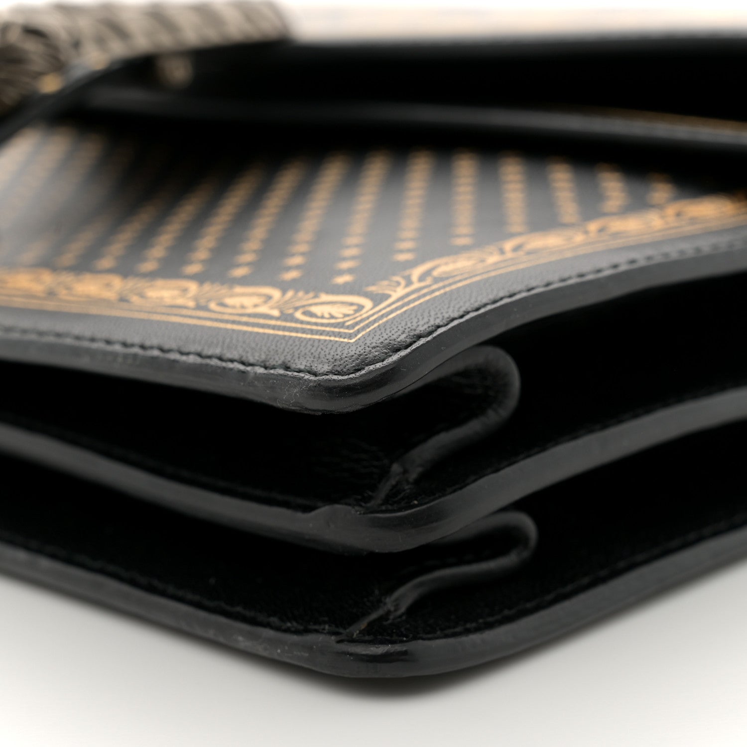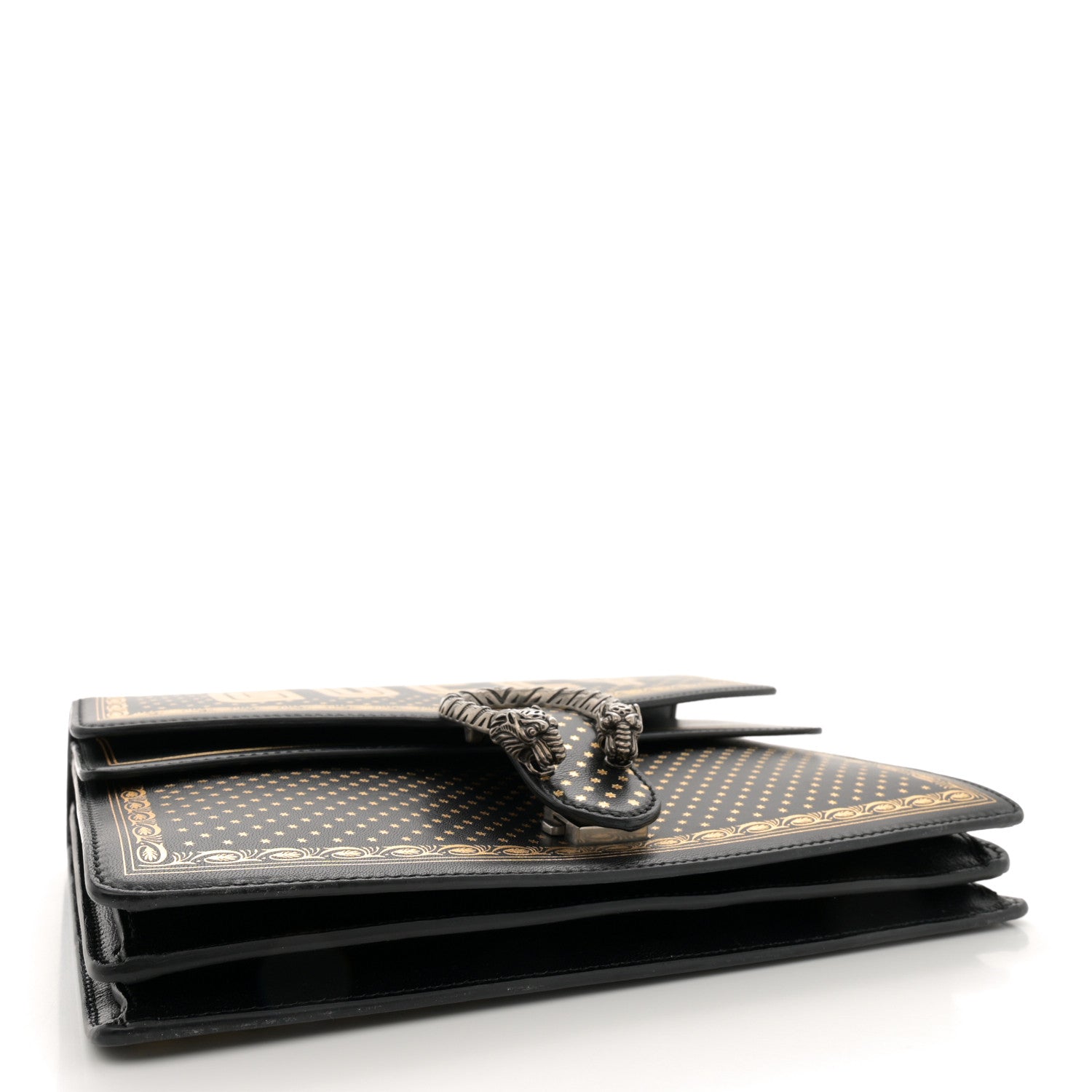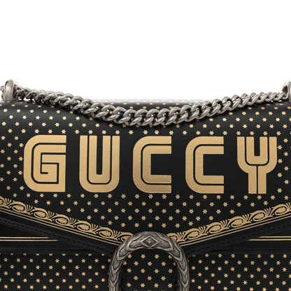 X SEGA Calfskin GUCCY Stars Medium Dionysus Shoulder Bag Black Gold
