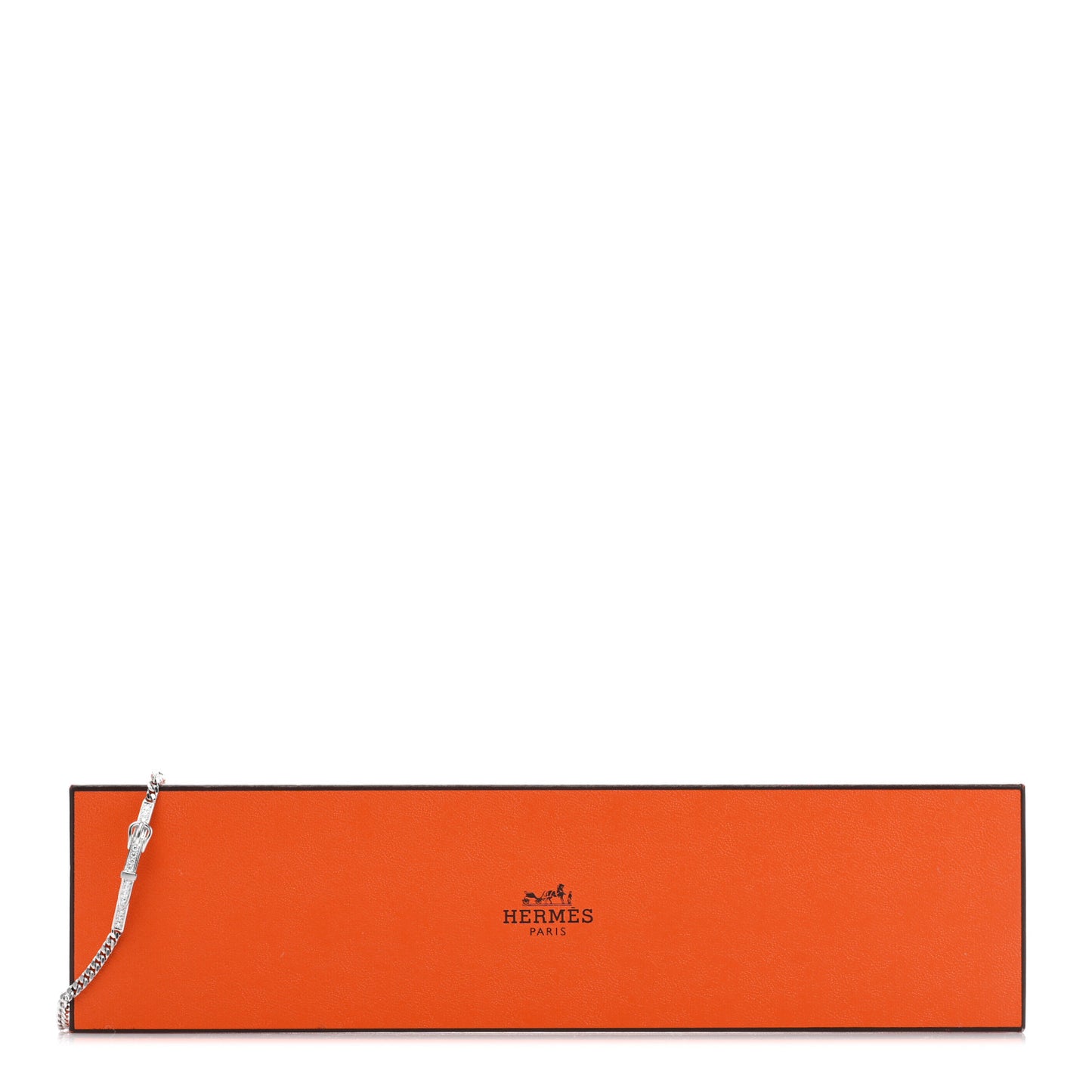 This is an authentic HERMES 18K White Gold Diamond Etriviere Bracelet. The bracelet is crafted of 18 karat white gold and features a buckle motif with pave set diamonds, approximately .18 total carat weight.Follow this item for alerts. Hermes is a registered trademark of Hermes. FASHIONPHILE is not affiliated with Hermes.
