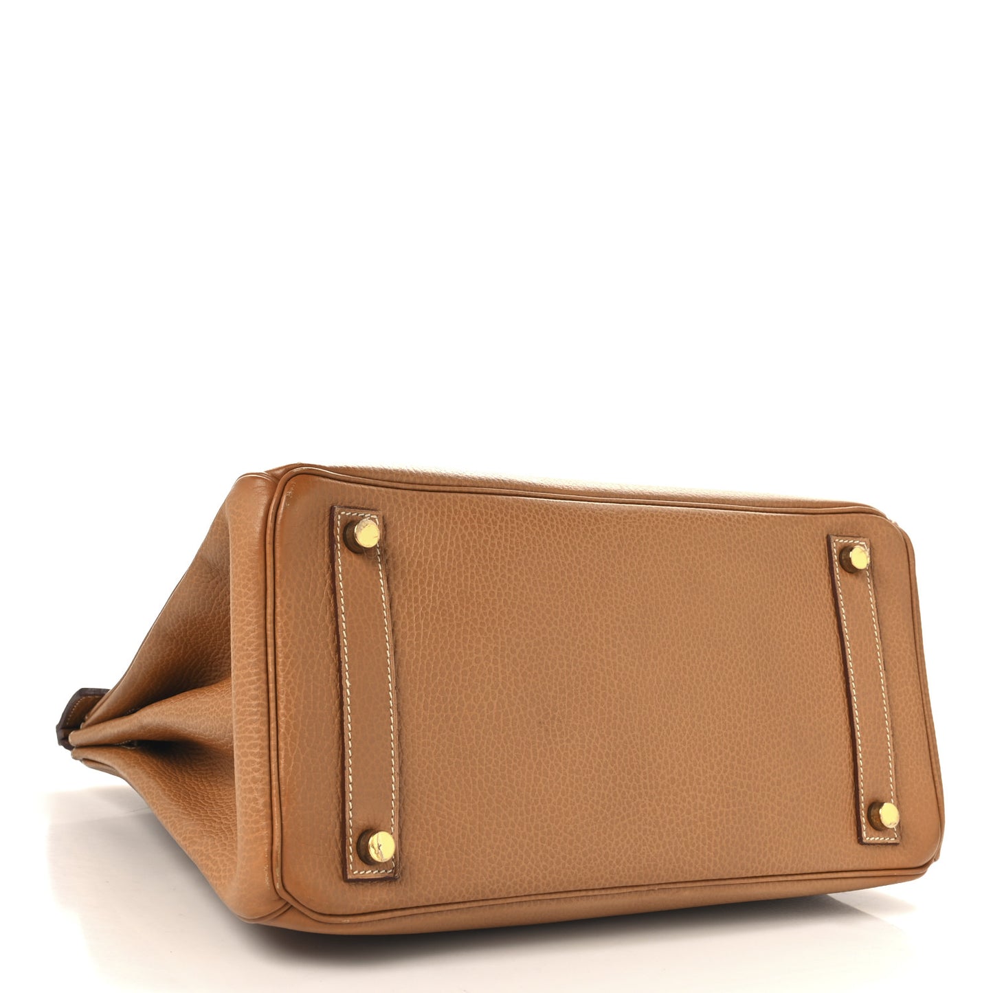 This is an authentic HERMES Ardennes HAC Birkin 32 in Naturelle. This stunning Birkin classic tote is crafted of beautifully textured calfskin leather in golden brown. The bag features leather top handles and a cross over flap with vertical strap closure and a gold plated turn lock and padlock. This opens to a chévre goatskin leather interior with pockets.Follow this item for alerts. Hermes is a registered trademark of Hermes. FASHIONPHILE is not affiliated with Hermes.