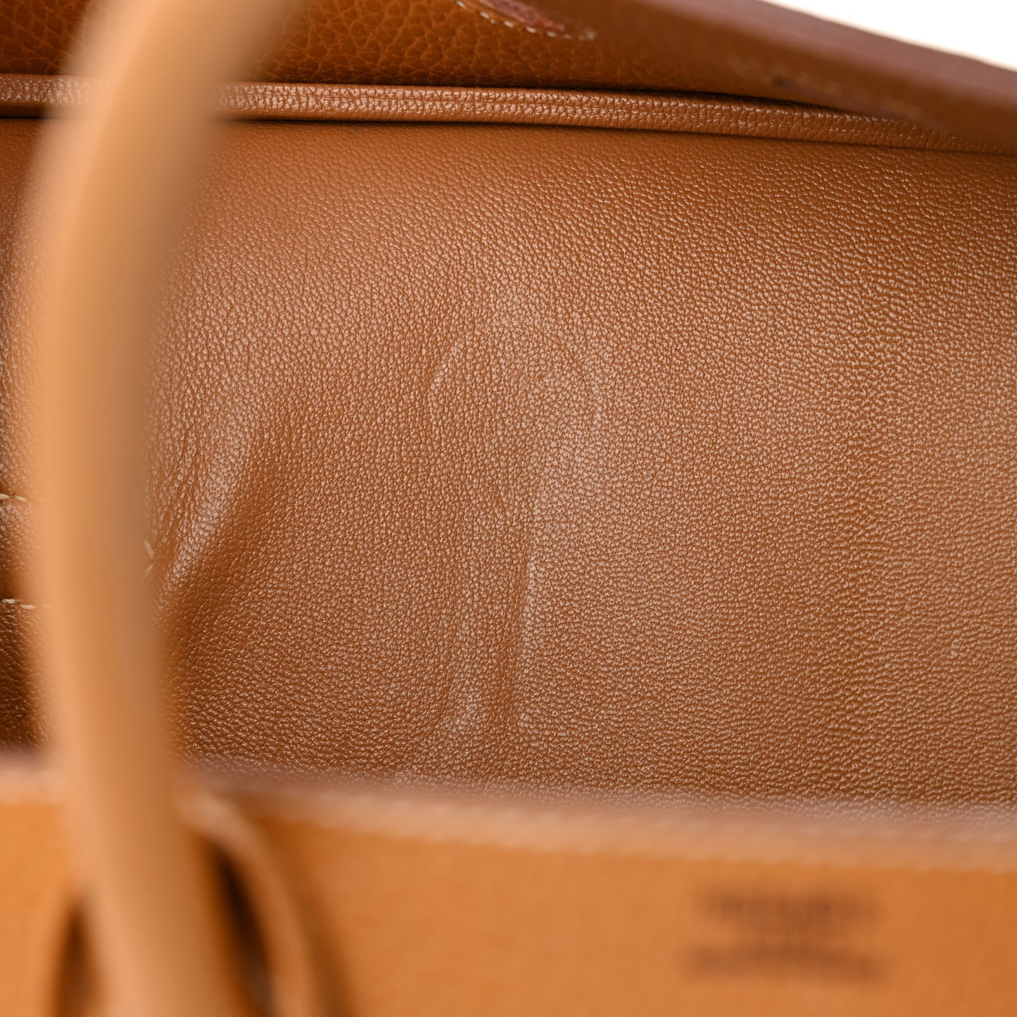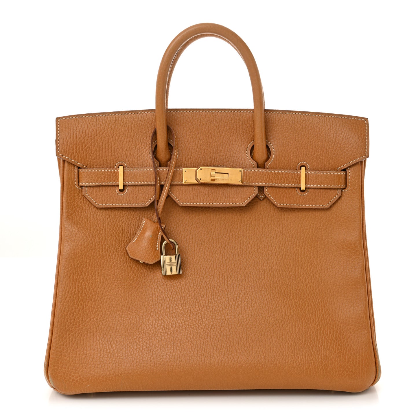 This is an authentic HERMES Ardennes HAC Birkin 32 in Naturelle. This stunning Birkin classic tote is crafted of beautifully textured calfskin leather in golden brown. The bag features leather top handles and a cross over flap with vertical strap closure and a gold plated turn lock and padlock. This opens to a chévre goatskin leather interior with pockets.Follow this item for alerts. Hermes is a registered trademark of Hermes. FASHIONPHILE is not affiliated with Hermes.