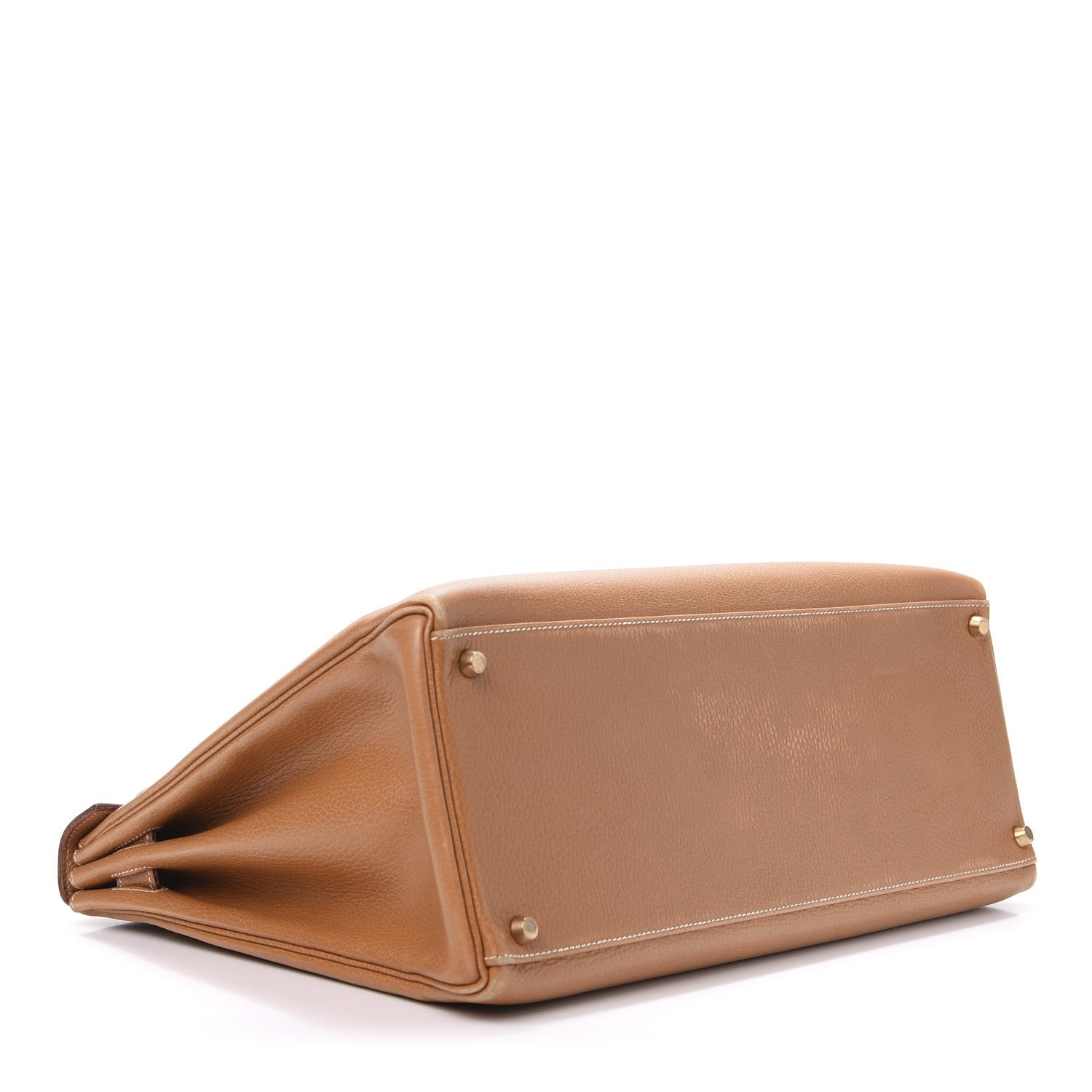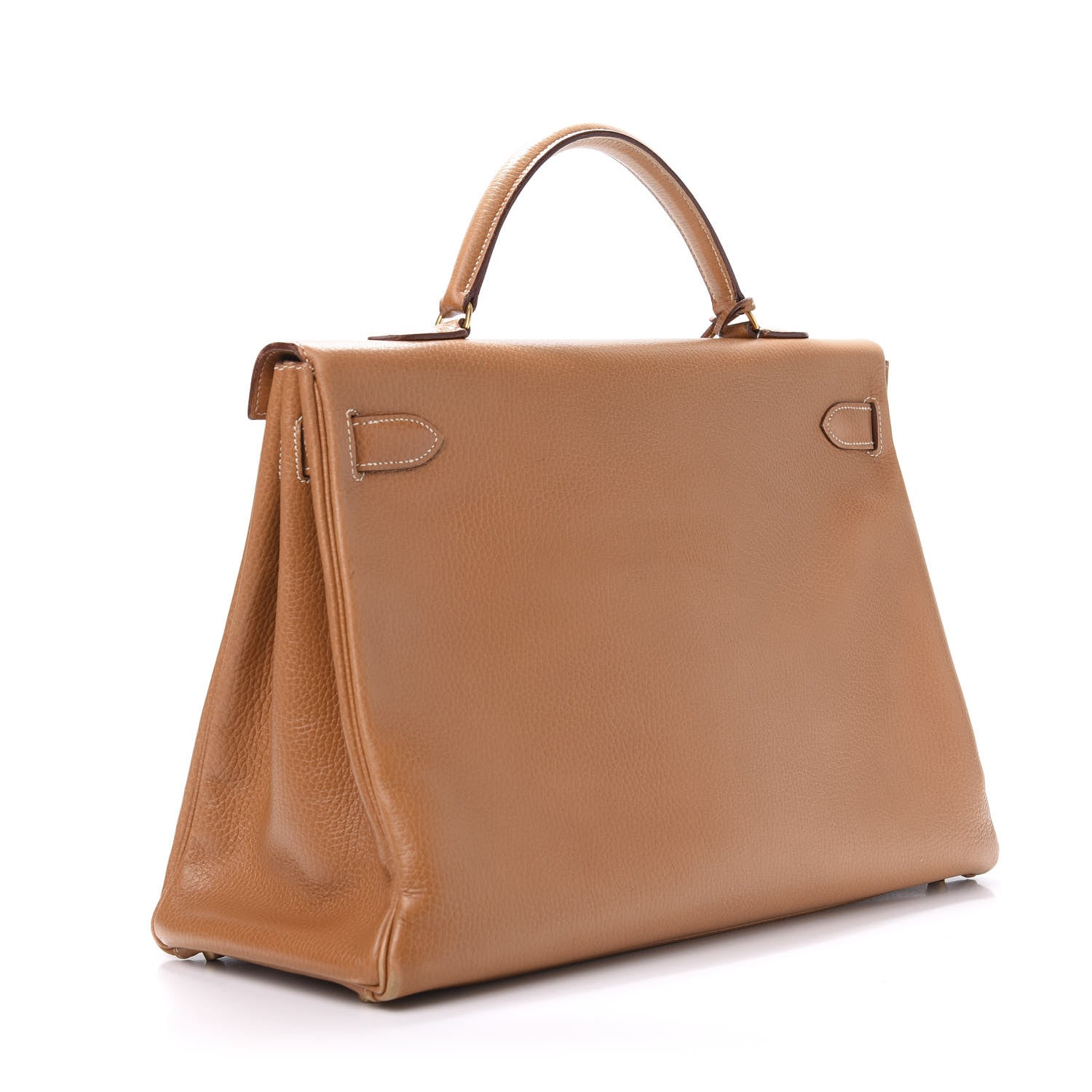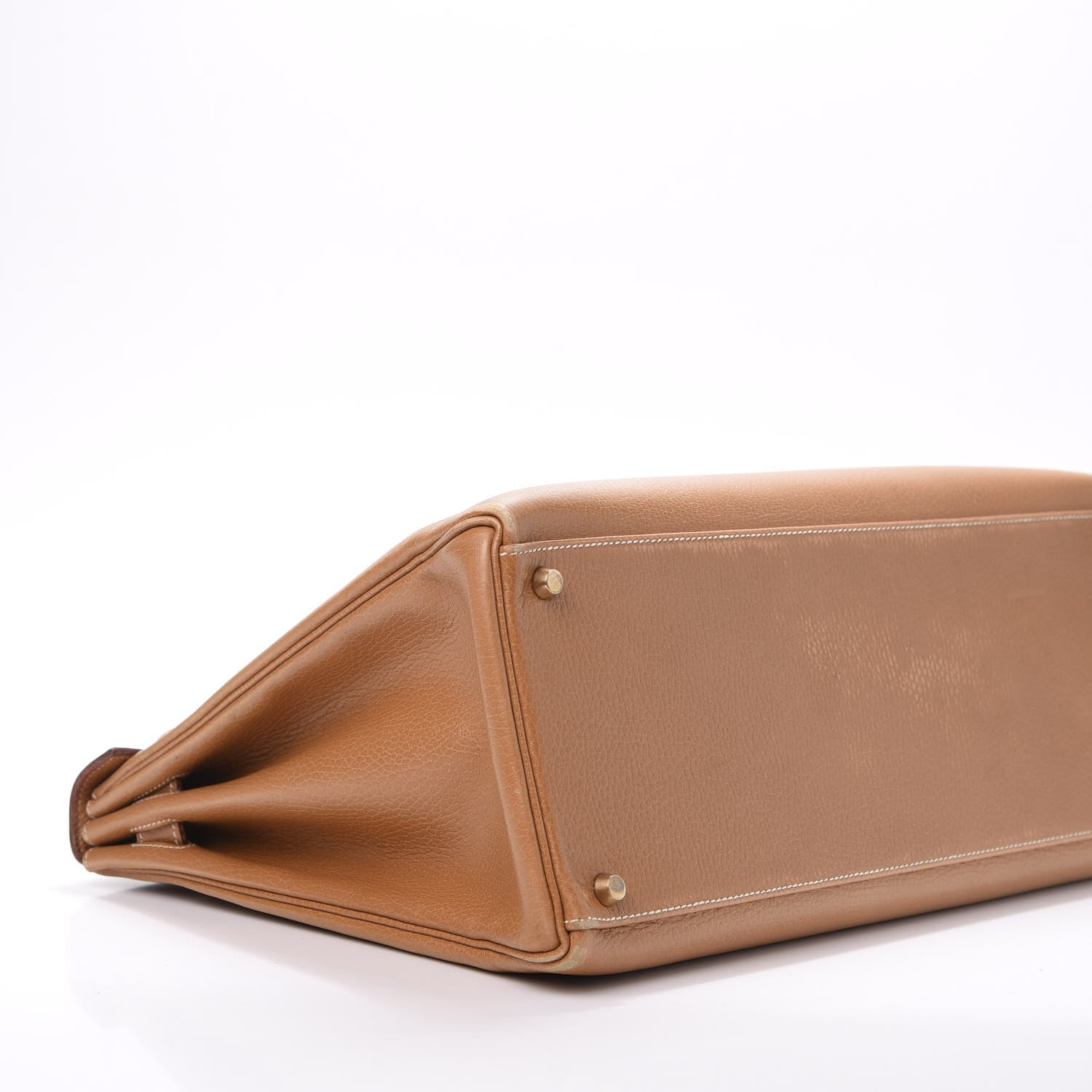 This is an authentic HERMES Ardennes Kelly Retourne 40 in Naturelle. This luxurious classic Kelly is crafted of beautifully pebble textured leather in brown. The bag features a reinforced leather top handle, a cross over flap and a shoulder strap with a gold Kelly signature turn lock. The flap opens to a goatskin leather interior with a sophisticated classic style for every occasion from Hermes.Follow this item for alerts. Hermes is a registered trademark of Hermes. FASHIONPHILE is not affiliated with Hermes.