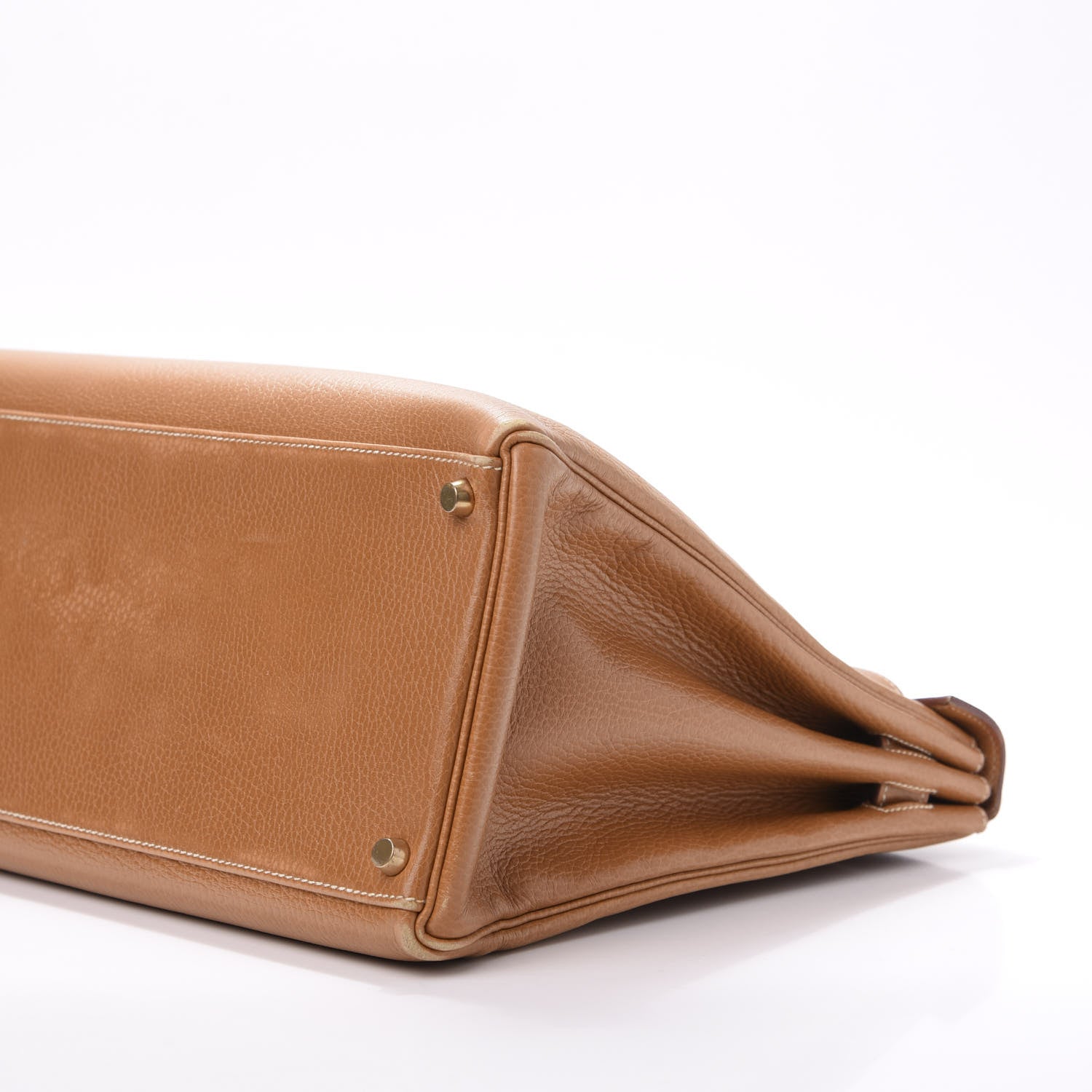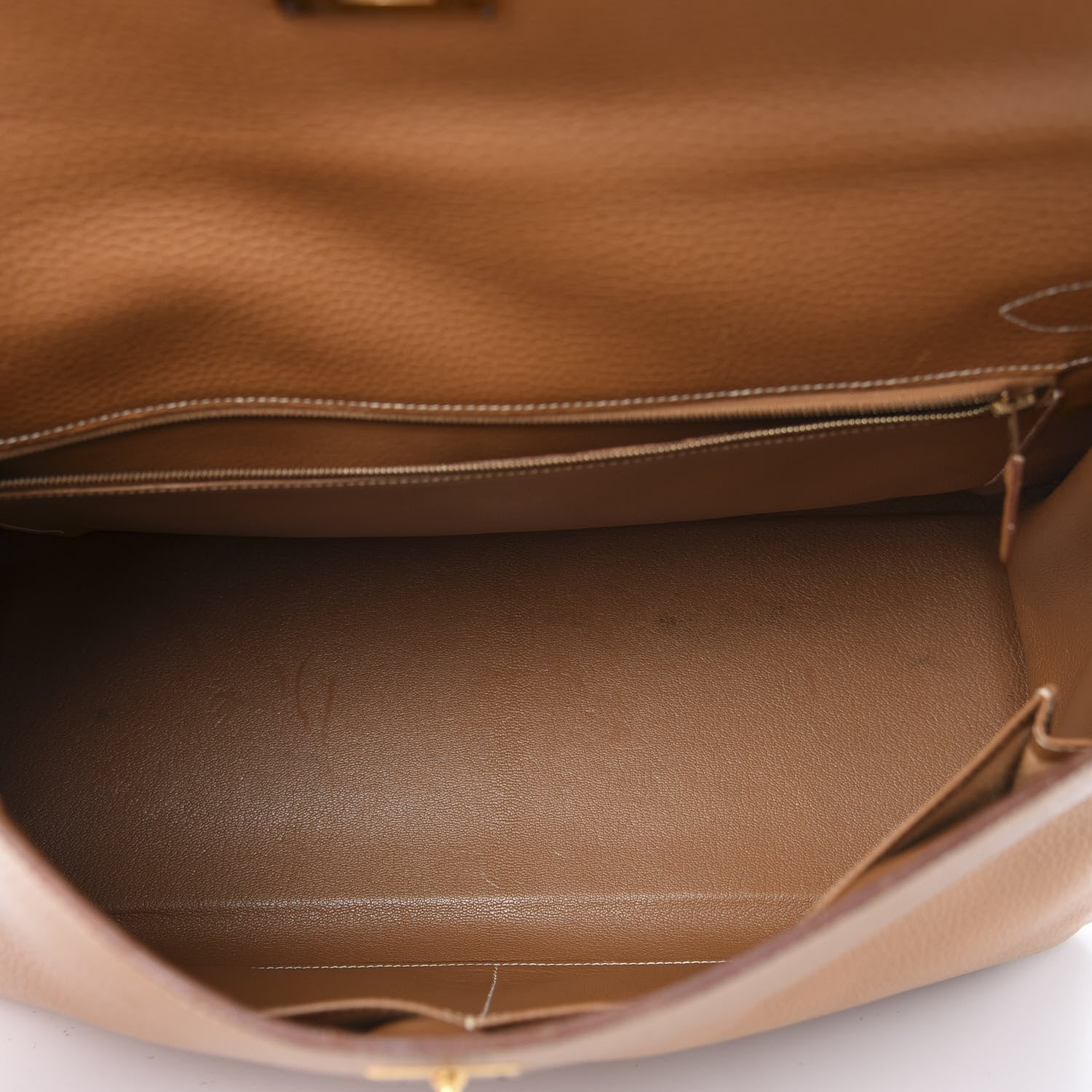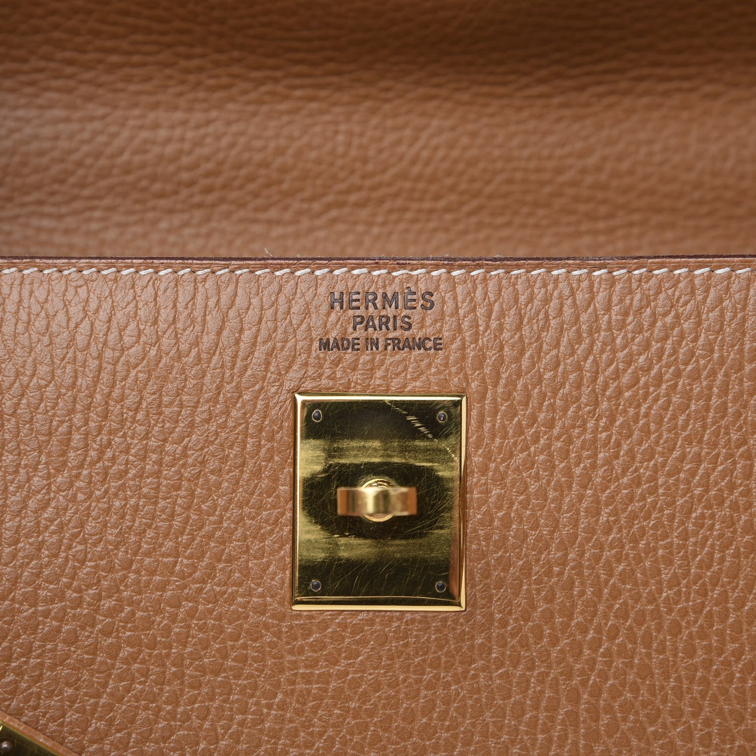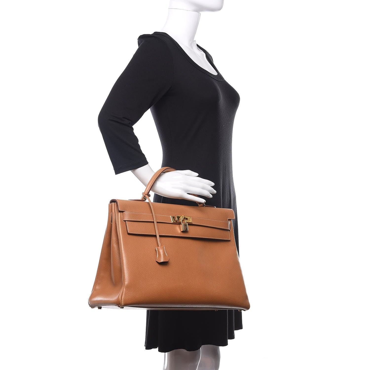 This is an authentic HERMES Ardennes Kelly Retourne 40 in Naturelle. This luxurious classic Kelly is crafted of beautifully pebble textured leather in brown. The bag features a reinforced leather top handle, a cross over flap and a shoulder strap with a gold Kelly signature turn lock. The flap opens to a goatskin leather interior with a sophisticated classic style for every occasion from Hermes.Follow this item for alerts. Hermes is a registered trademark of Hermes. FASHIONPHILE is not affiliated with Hermes.