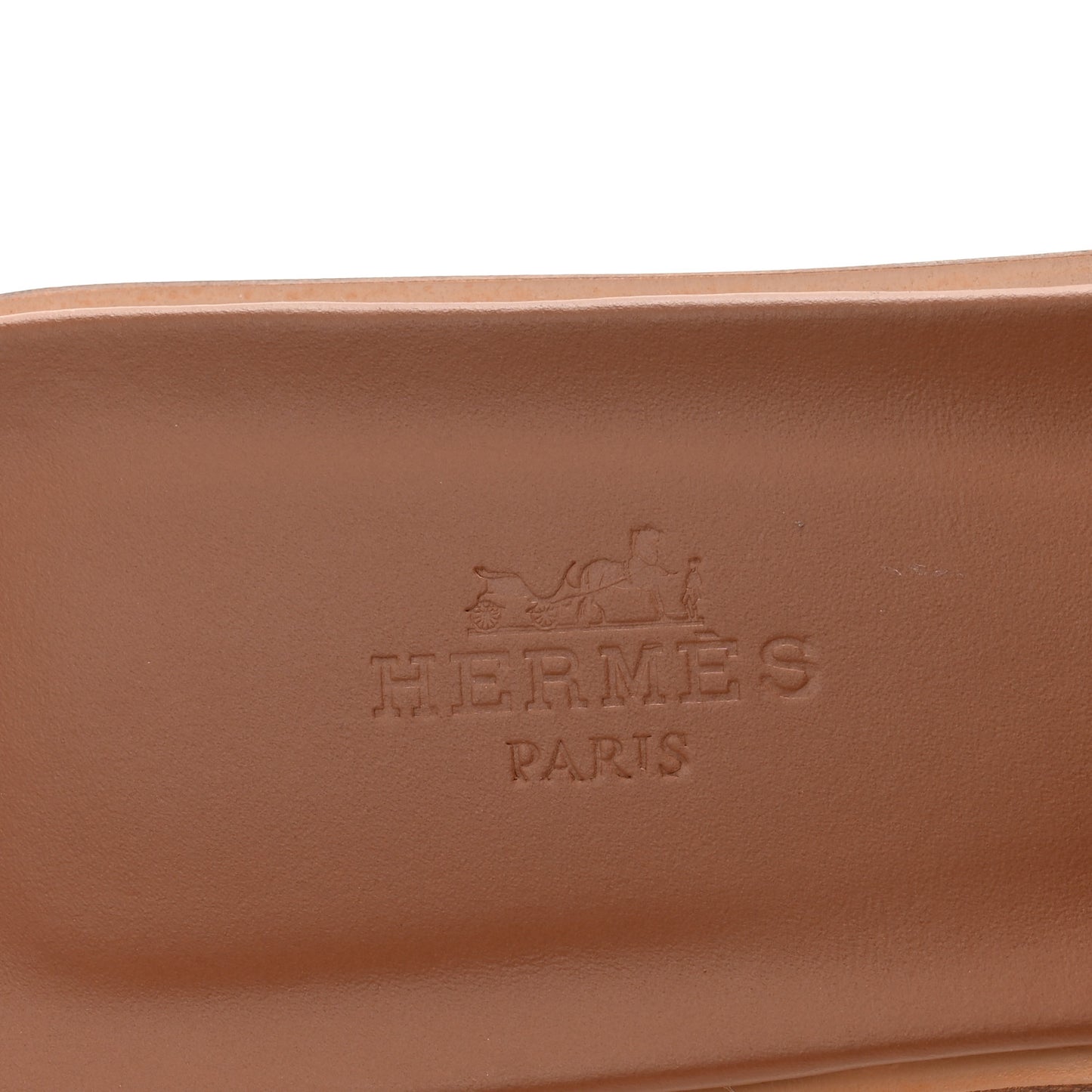 This is an authentic pair of HERMES Box Calfskin Oran Sandals size 38.5 in Gold. These stylish slippers are polished smooth calfskin leather in brown. These sandals feature a toe strap with a cross over large Hermes H.Follow this item for alerts. Hermes is a registered trademark of Hermes. FASHIONPHILE is not affiliated with Hermes.