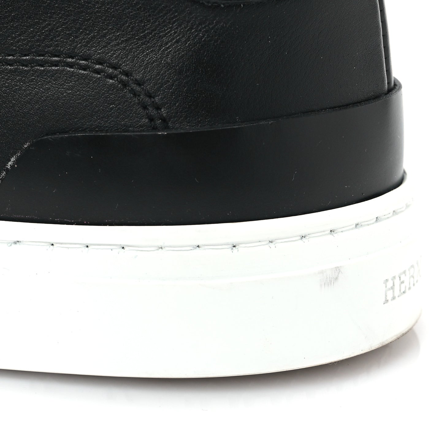 This is an authentic pair of HERMES Calfskin Deep Sneakers size 39 in Black. These stylish sneakers are crafted of soft calfskin leather in black, with leather trim accents at the heel and toe, and white rubber soles.Follow this item for alerts. Hermes is a registered trademark of Hermes. FASHIONPHILE is not affiliated with Hermes.