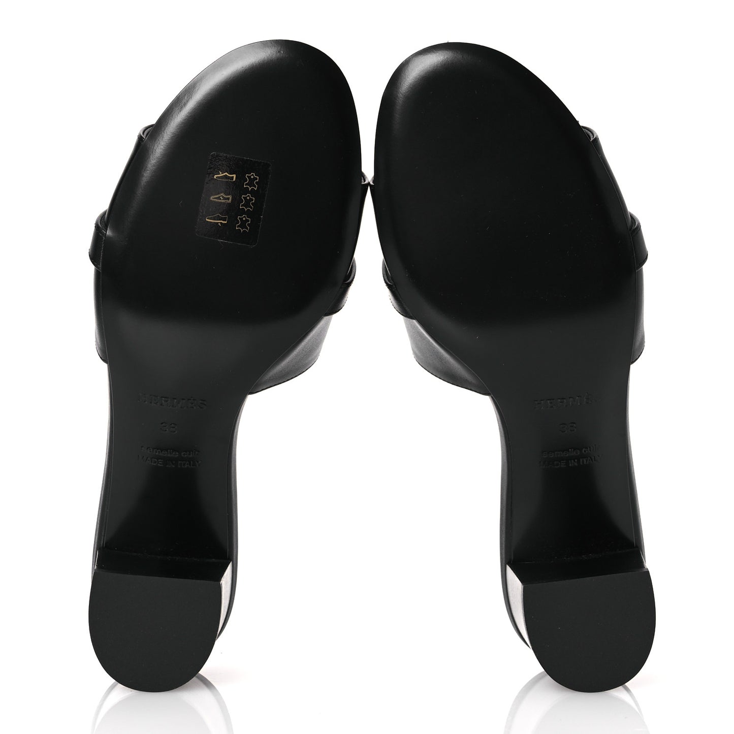 Hermes/ Accessories/ Shoes /Hermes Calfskin Gigi 50 Sandals 38 Black