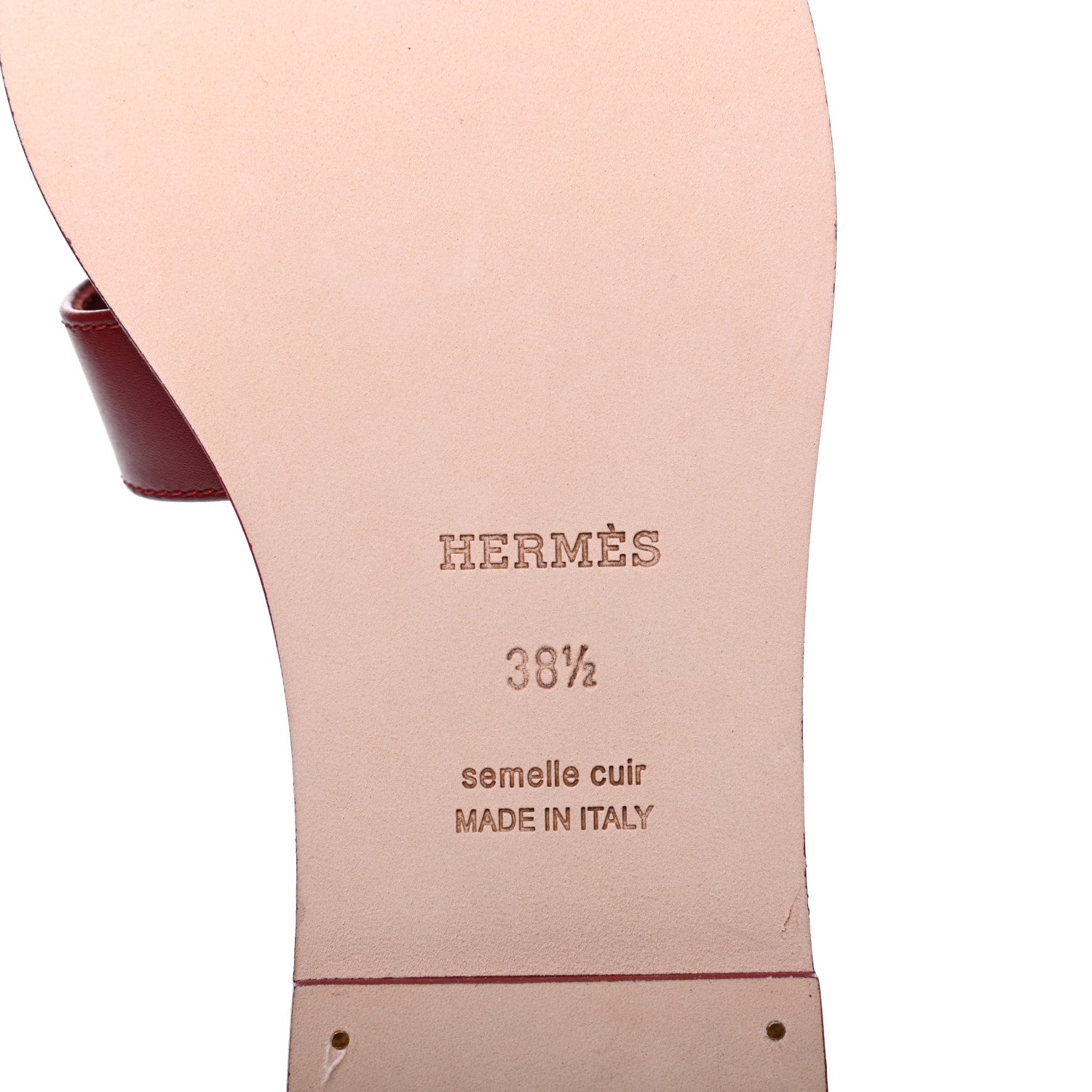 Hermes/ Accessories/ Shoes /Hermes Calfskin Oran Sandals 38.5 Rouge Tomette