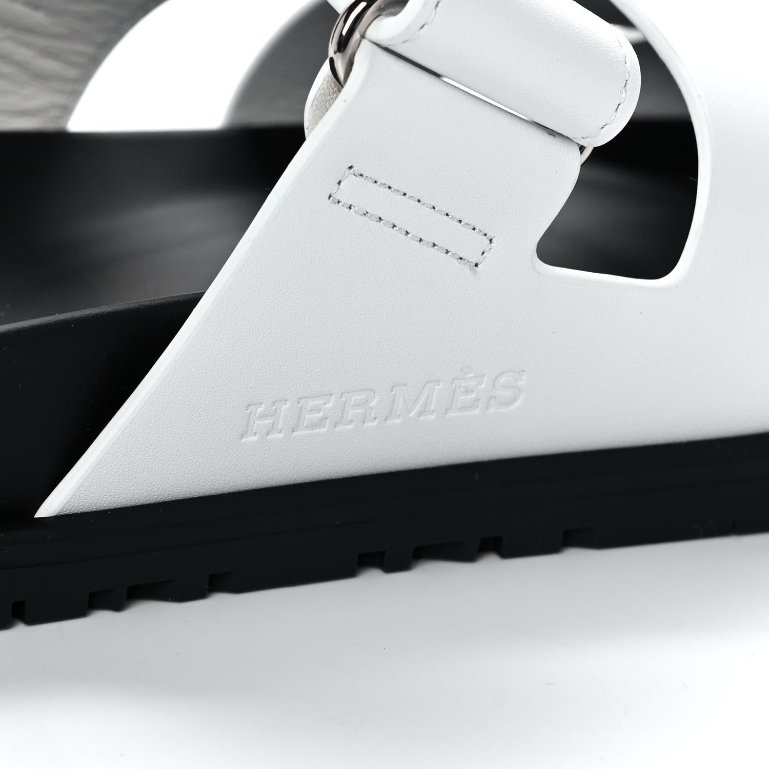 Hermes/ Accessories/ Shoes /Hermes Calfskin Womens Chypre Sandals 38.5 White