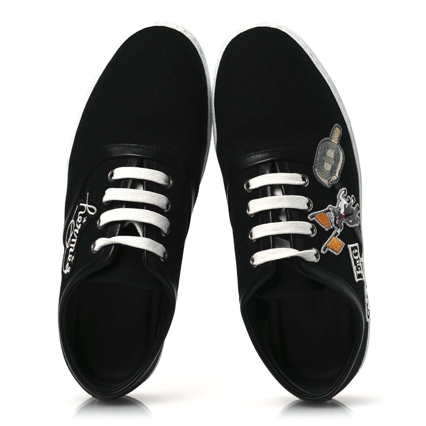 Hermes/ Accessories/ Shoes /Hermes Canvas Embroidered Innocent Sneakers 38 Black