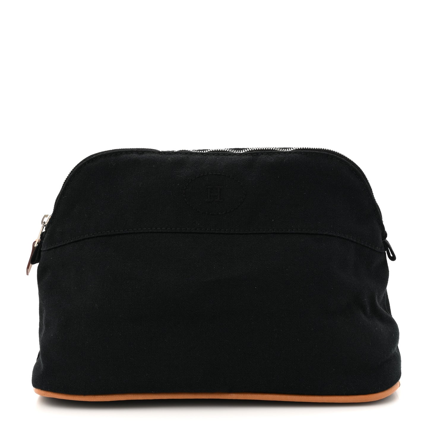 This is an authentic HERMES Cotton Canvas Bolide Travel Cosmetic Pouch MM in Black. The base is trimmed with golden brown leather. The palladium wrap-around zipper opens to a fabric interior with a patch pocketFollow this item for alerts. Hermes is a registered trademark of Hermes. FASHIONPHILE is not affiliated with Hermes.