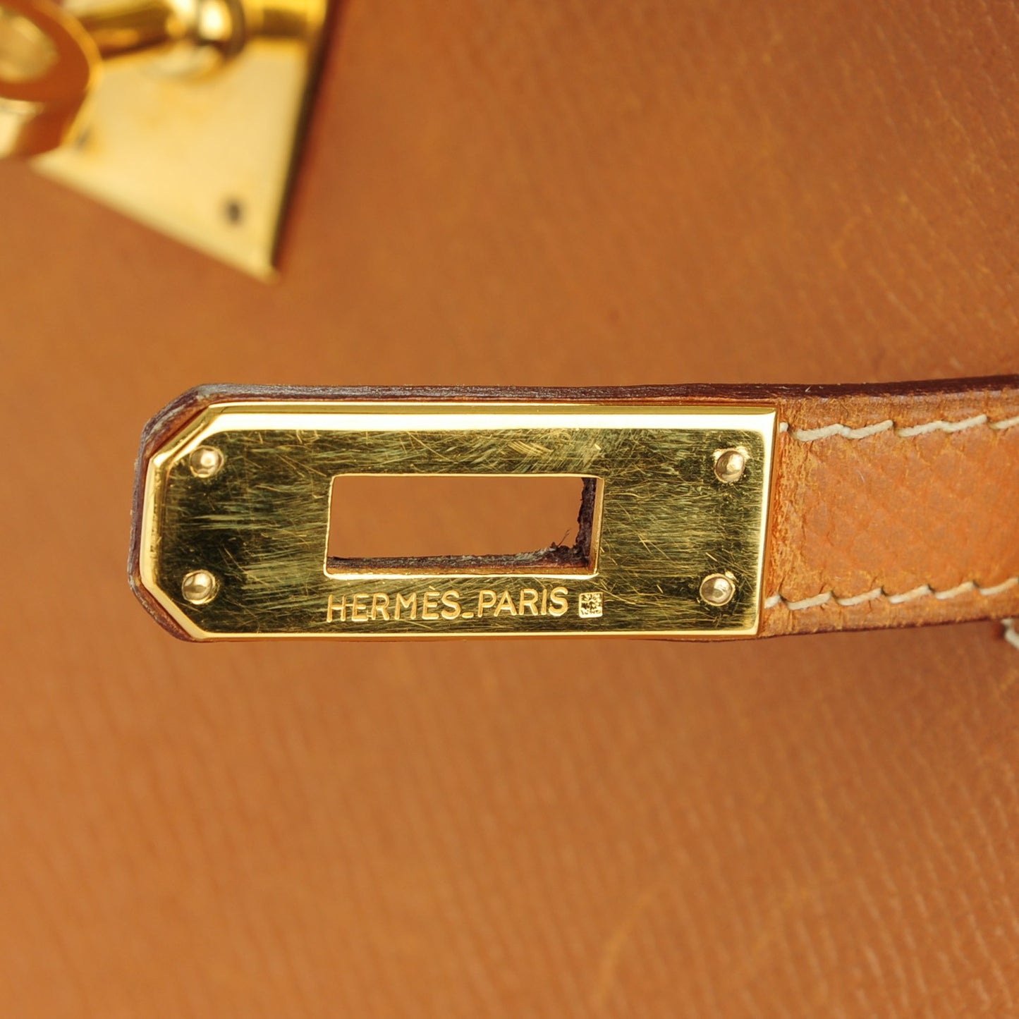 This is the authentic HERMES Vintage Courchevel Kelly Sport PM in Gold. This stylish Kelly shoulder bag is finely crafted of box calf leather in gold. The tall shape has a long leather shoulder strap and a top strap closure with polished brass hardware including buckles and a turn lock. This opens to a brown leather interior with patch pockets This is a fabulous shoulder bag for everyday use from Hermes!Follow this item for alerts. Hermes is a registered trademark of Hermes. FASHIONPHILE is not affiliated with Hermes.