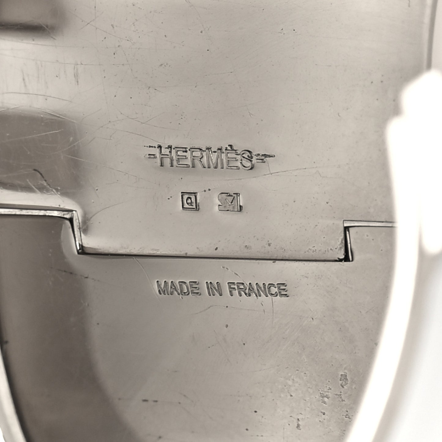 This is an authentic HERMES Enamel Extra Wide Clic Clac H Bracelet PM in White. This is a chic bracelet from Hermes that is classic yet very modern. This bracelet is a wide silver plated band inlaid with white enamel. There is a hinge on one side that opens with a Hermes "H" on the prominent side.Follow this item for alerts. Hermes is a registered trademark of Hermes. FASHIONPHILE is not affiliated with Hermes.