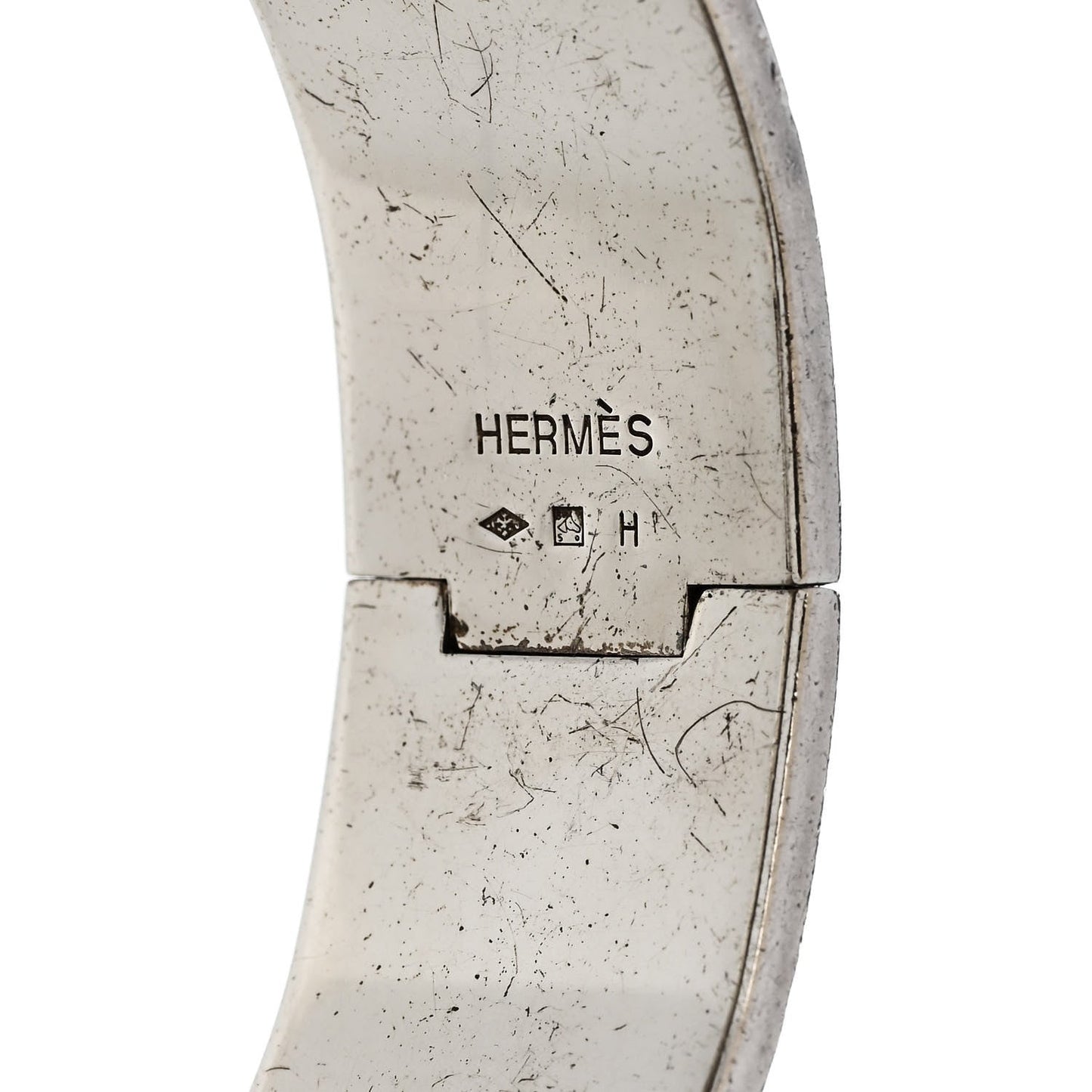 This is an authentic HERMES Enamel Wide Clic Clac H Bracelet PM in Orange. This chic bracelet features a wide polished silver-plated band with an orange enamel inlay. The bracelet opens with a swivel Hermes "H" on the prominent side.Follow this item for alerts. Hermes is a registered trademark of Hermes. FASHIONPHILE is not affiliated with Hermes.