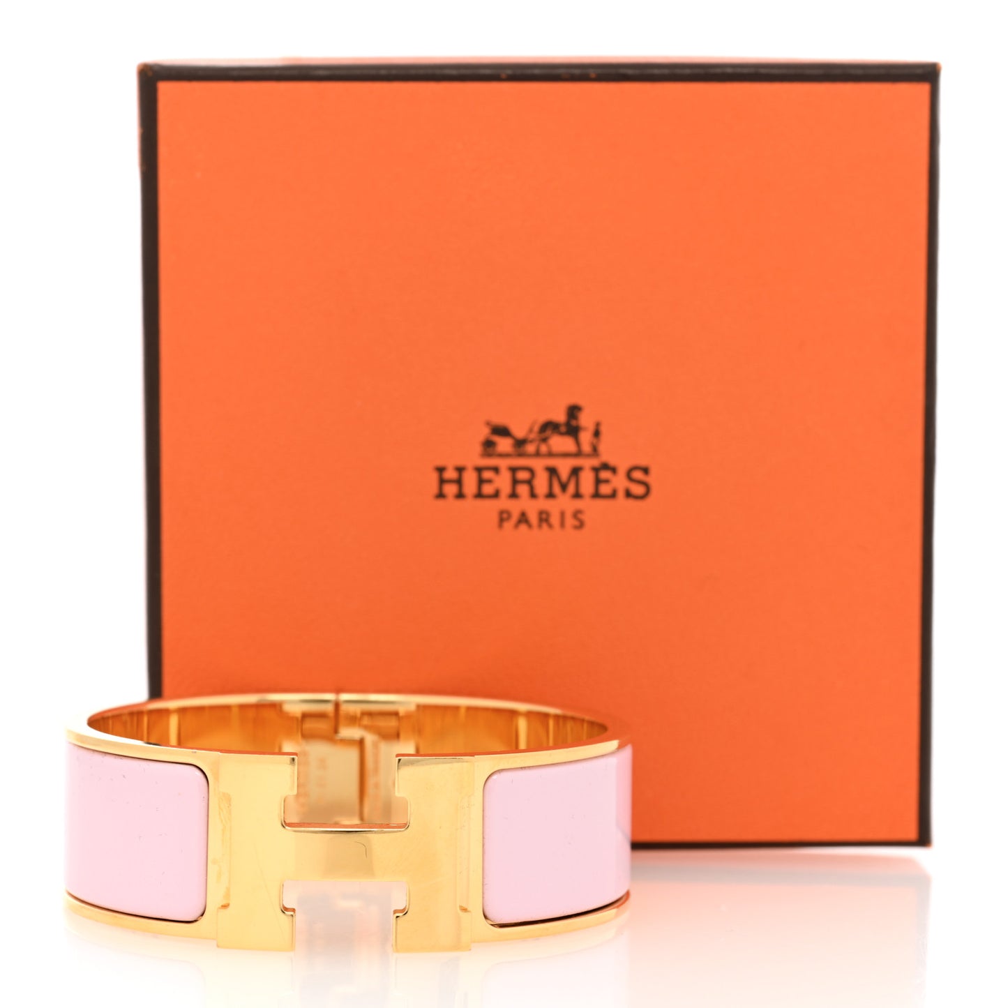 This is an authentic HERMES Enamel Wide Clic Clac H Bracelet PM in Rose Dragee. This chic bracelet is crafted of rose gold metal, set with pink enamel.Follow this item for alerts. Hermes is a registered trademark of Hermes. FASHIONPHILE is not affiliated with Hermes.