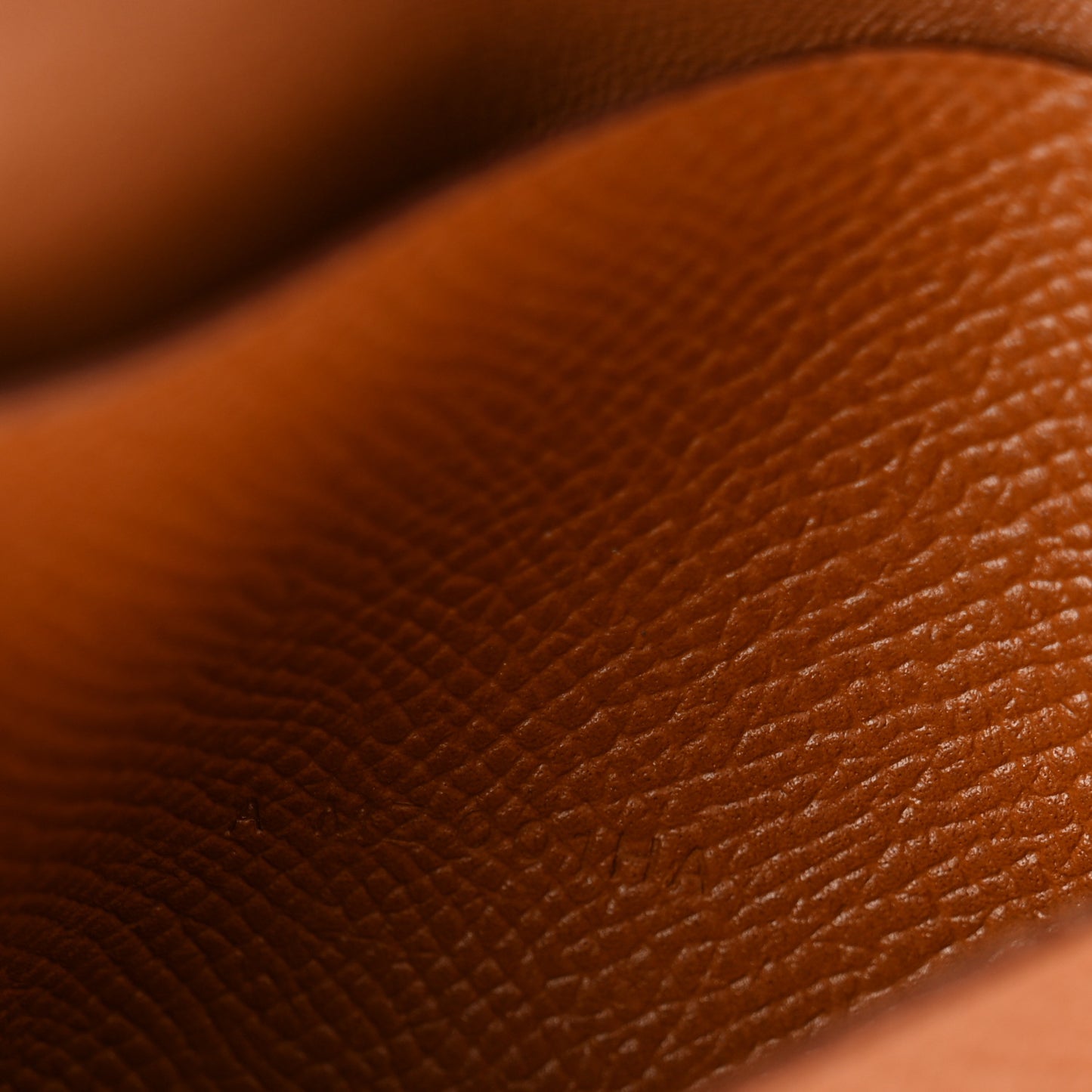 This is an authentic HERMES Epsom Bearn Card Holder Wallet in Gold. This chic compact wallet is made out of sturdy Epsom leather in golden brown. The leather strap secures with a bold gold plated Hermes "H". This opens to a matching leather interior with flat slots for cards.Follow this item for alerts. Hermes is a registered trademark of Hermes. FASHIONPHILE is not affiliated with Hermes.