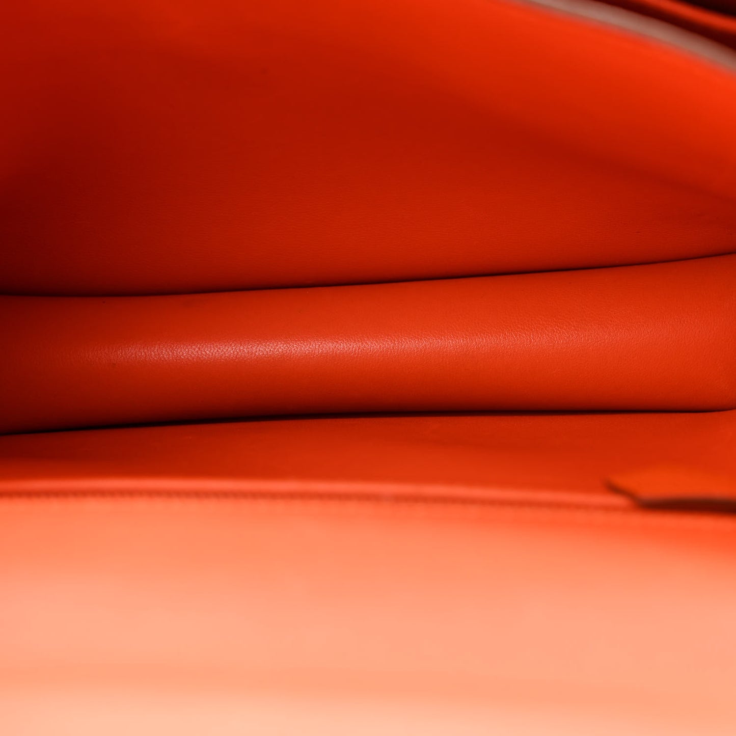 This is an authentic HERMES Epsom Constance 24 in Orange. This stylish shoulder bag is finely crafted of epsom calfskin leather in orange. The bag features a cross body strap with palladium silver hardware including an H buckle at the frontal flap. The flap opens to a compact partitioned leather interior with a patch pocket. This is a bold yet sophisticated shoulder bag for day, from Hermes!Follow this item for alerts. Hermes is a registered trademark of Hermes. FASHIONPHILE is not affiliated with Hermes.