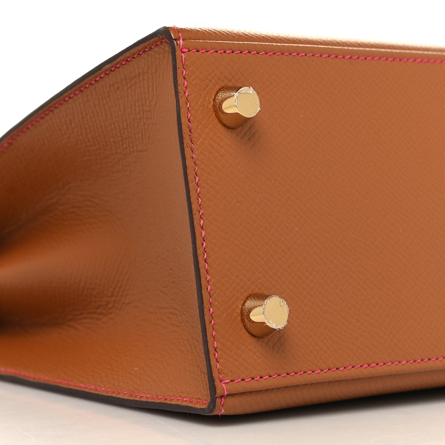 This is an authentic HERMES Epsom Horseshoe Kelly Sellier 25 Gold Rose Mexico. This Hermes classic handbag is beautifully crafted of stamped epsom calfskin leather in brown with pink stitching. It features a single rolled leather top handle, brushed gold lock closure, a removable shoulder strap, and a lock & hanging clochette with keys. The turnlock opens to a chevre leather interior with zippered and patch pockets.Follow this item for alerts. Hermes is a registered trademark of Hermes. FASHIONPHILE is not affiliated with Hermes.