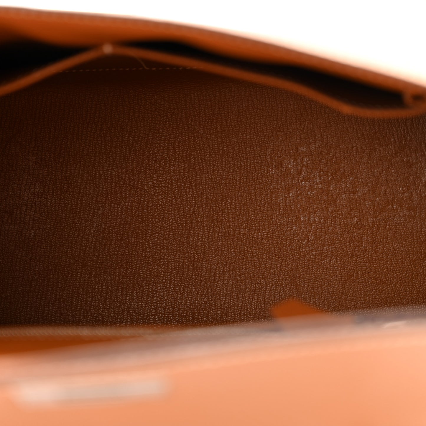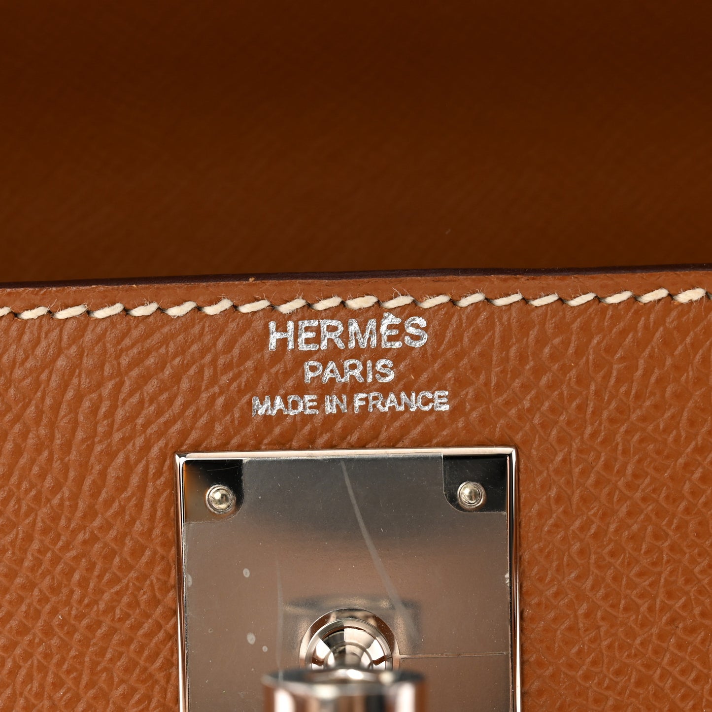This is an authentic HERMES Epsom Kelly Sellier 28 in Gold. This classic handbag is crafted with brown stamped Epsom calfskin leather. A single rolled leather top handle is secured with polished palladium hardware, and an optional leather shoulder strap is included. The traditional turn lock secures the small flap with a padlock. A hanging leather key clochette accessorizes this handbag. The interior features two flat pockets and a zippered pocket, both in chevre goatskin leather.Follow this item for alerts. Hermes is a registered trademark of Hermes. FASHIONPHILE is not affiliated with Hermes.