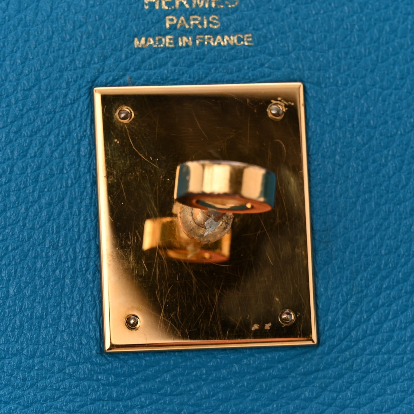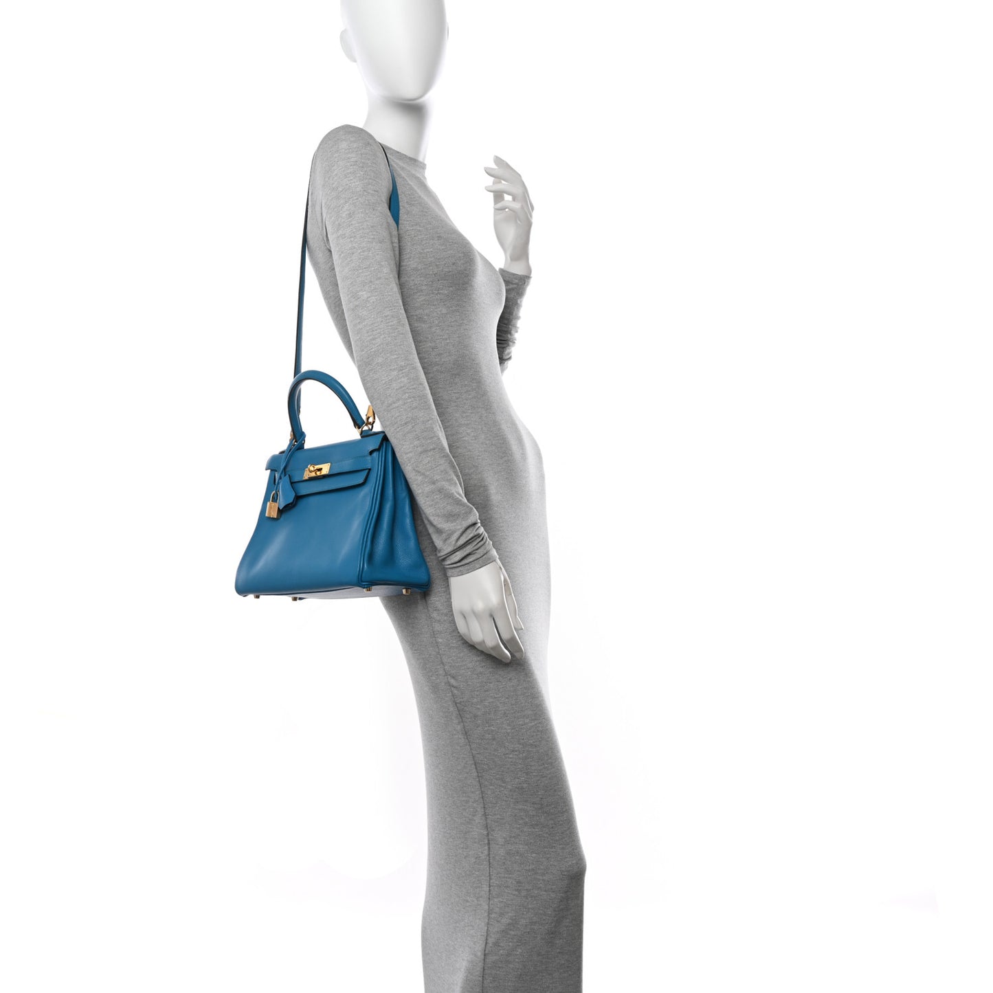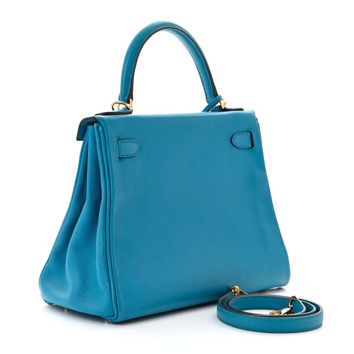 Hermes/ Bags/ Shoulder Bags /Hermes Evercolor Kelly Retourne 28 Bleu Zanzibar