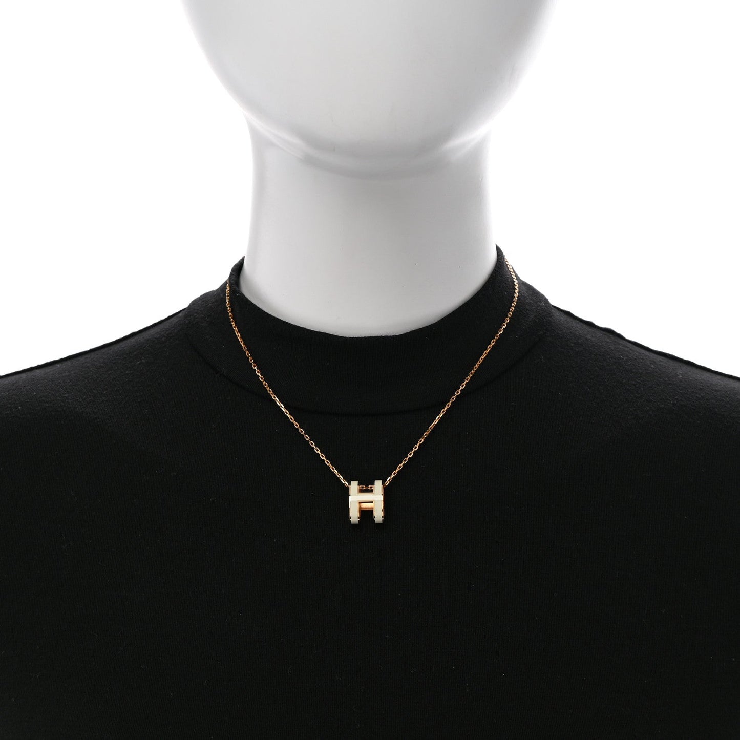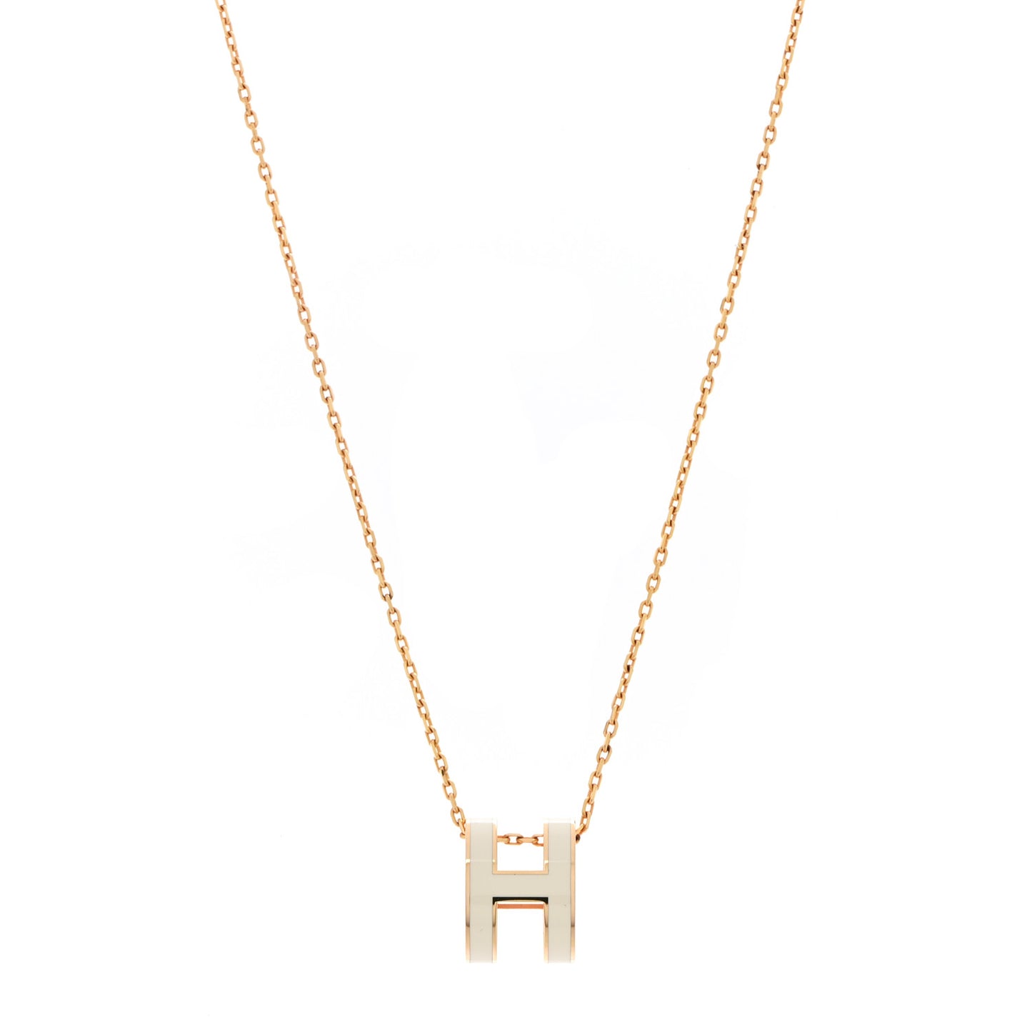 This is an authentic HERMES Lacquered Gold Pop H Pendant Necklace in White. This simple but delightful piece in gold is with an elongated Hermes “H" that is enameled in white.Follow this item for alerts. Hermes is a registered trademark of Hermes. FASHIONPHILE is not affiliated with Hermes.