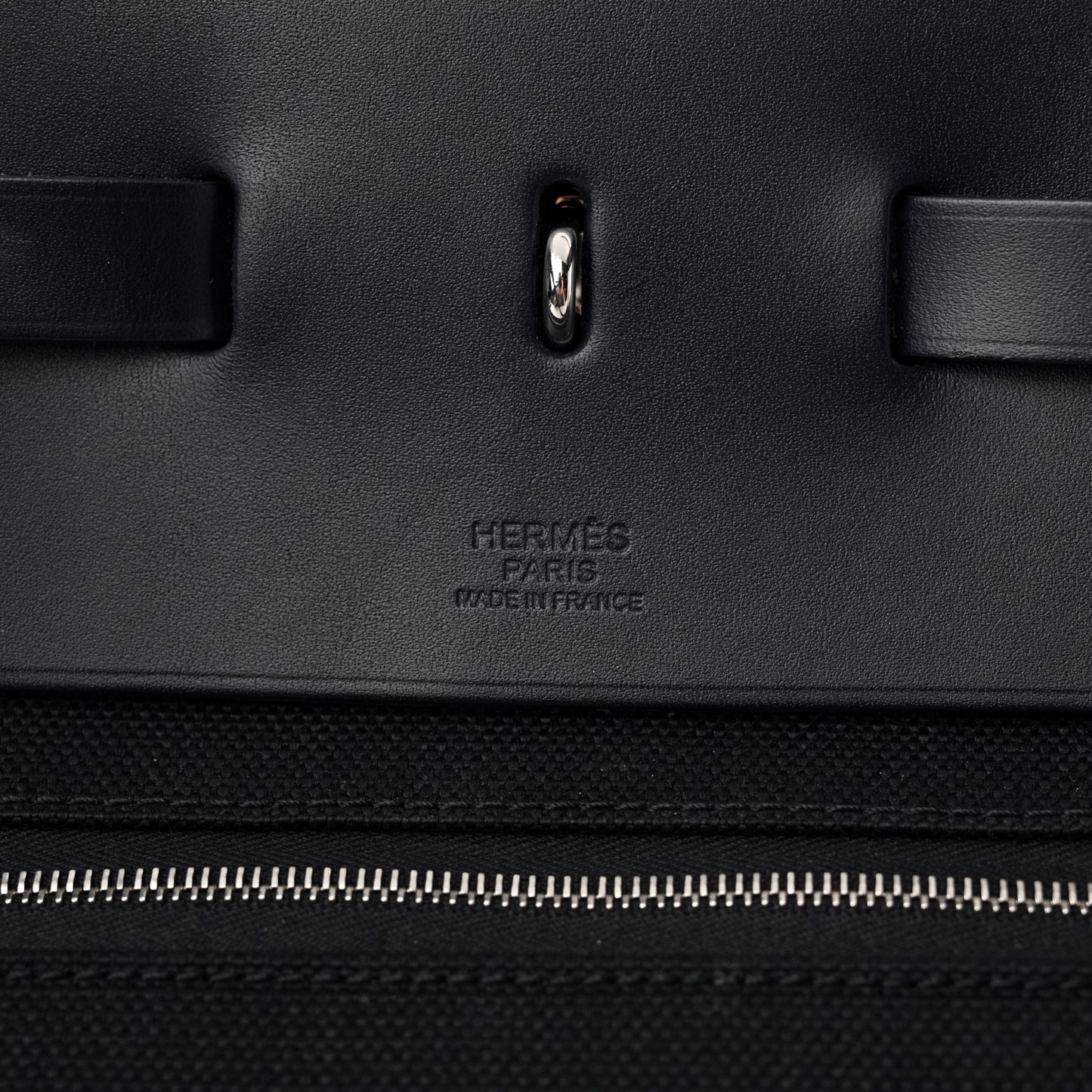 Hermes/ Bags/ Shoulder Bags /Hermes Military Toile Vache Hunter Herbag Zip Retourne Cabine Bag Black Bleu Marine