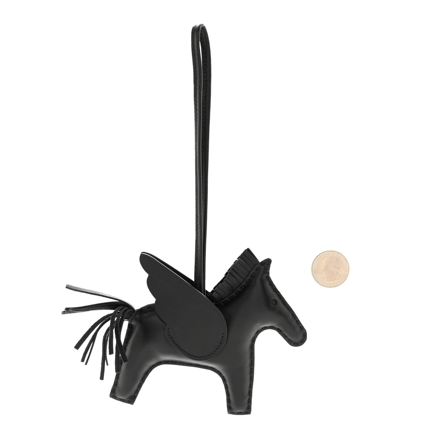 Hermes/ Accessories/ Bag Charms /Hermes Milo Lambskin Grigri Rodeo Pegase Horse Bag Charm MM So Black