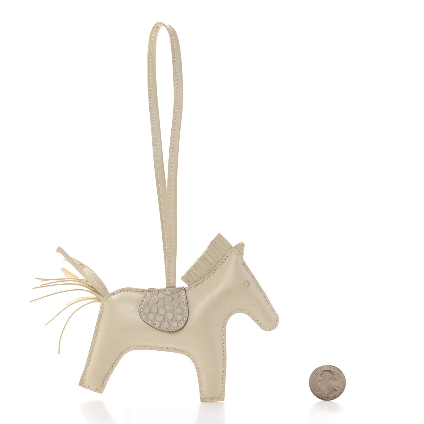 Hermes/ Accessories/ Bag Charms /Hermes Milo Lambskin Matte Alligator Touch Grigri Rodeo Horse Bag Charm MM Craie